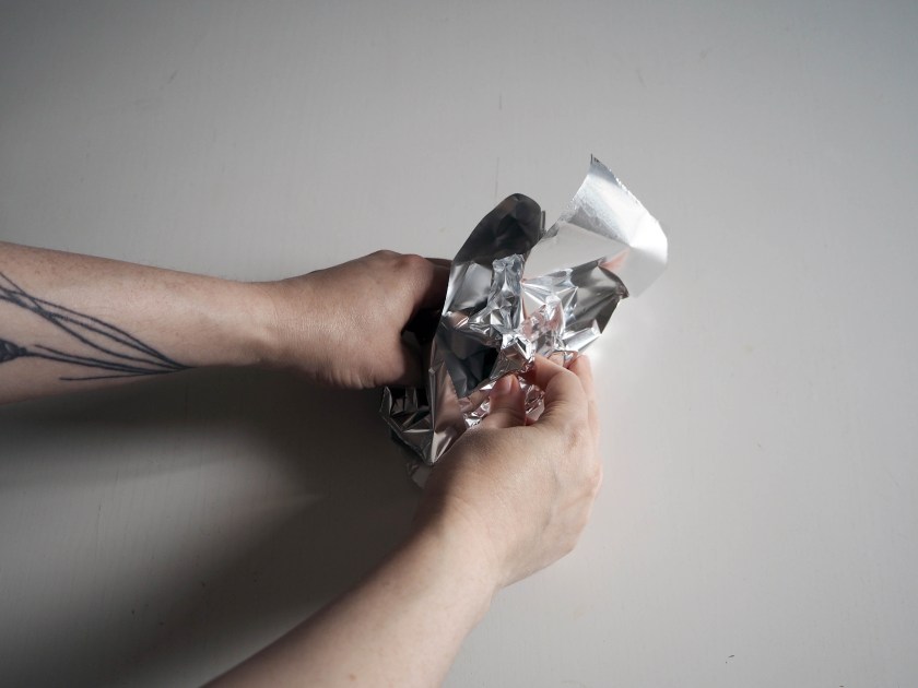 2. Prick the eggplants with a fork all over. Put garlic cloves with hard skin on a piece of aluminium folio and drizzle olive oil. Cover the folio and put eggplants and garlic on the oven tray. Roast them in the middle rack: garlic for about 40 minutes, eggplants for about 1.5 hours. For eggplants: turn them over using tongs around 40 minutes mark so that all sides are roasted well. The eggplants should be very very soft in the end, so if you think your oven needs more time, then leave them in the oven longer. Once roasted, let them cool on a wire rack for at least 10 minutes, or your fingers will burn in the next step.