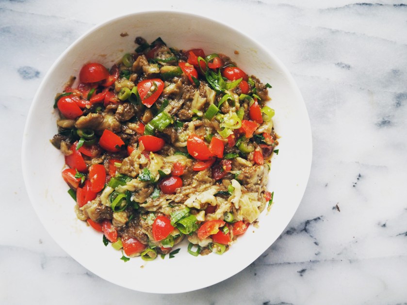 By the way, you can also grill the eggplants if it is grilling season or if you have a gas stove. It changes the taste but it is equally delicious. I have a gas stove and sometimes smoke the eggplant on the fire – it is slightly messy and you need to be careful but oh boy it IS absolutely delicious – just like many other things cooked directly on fire.