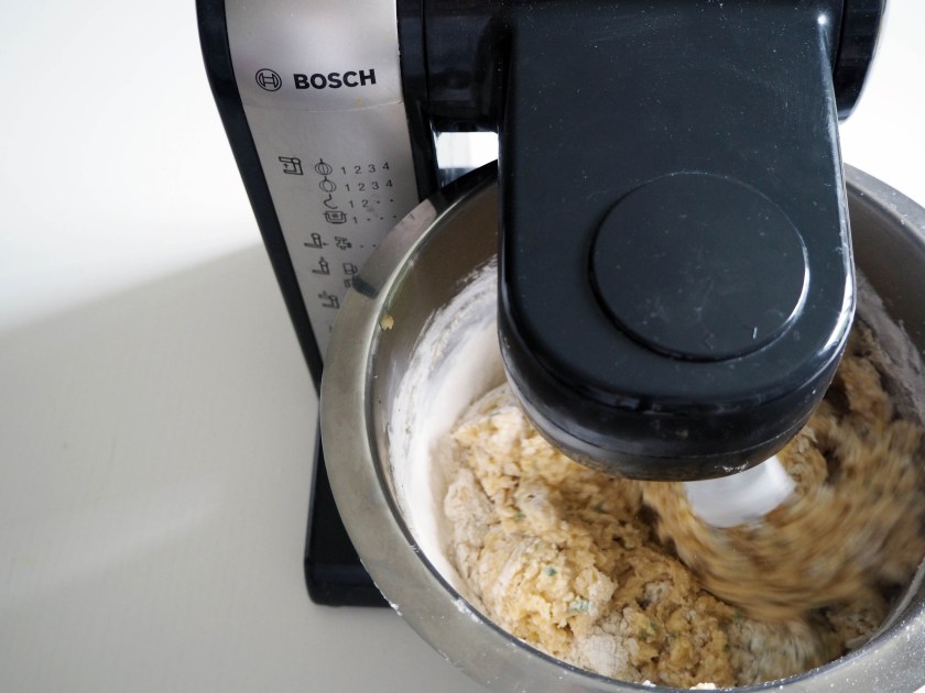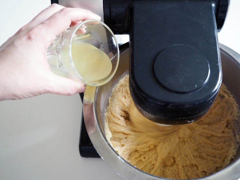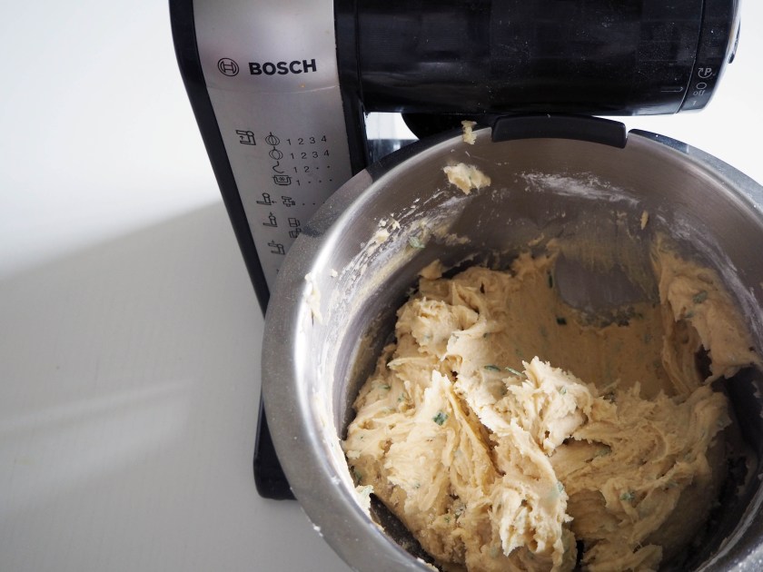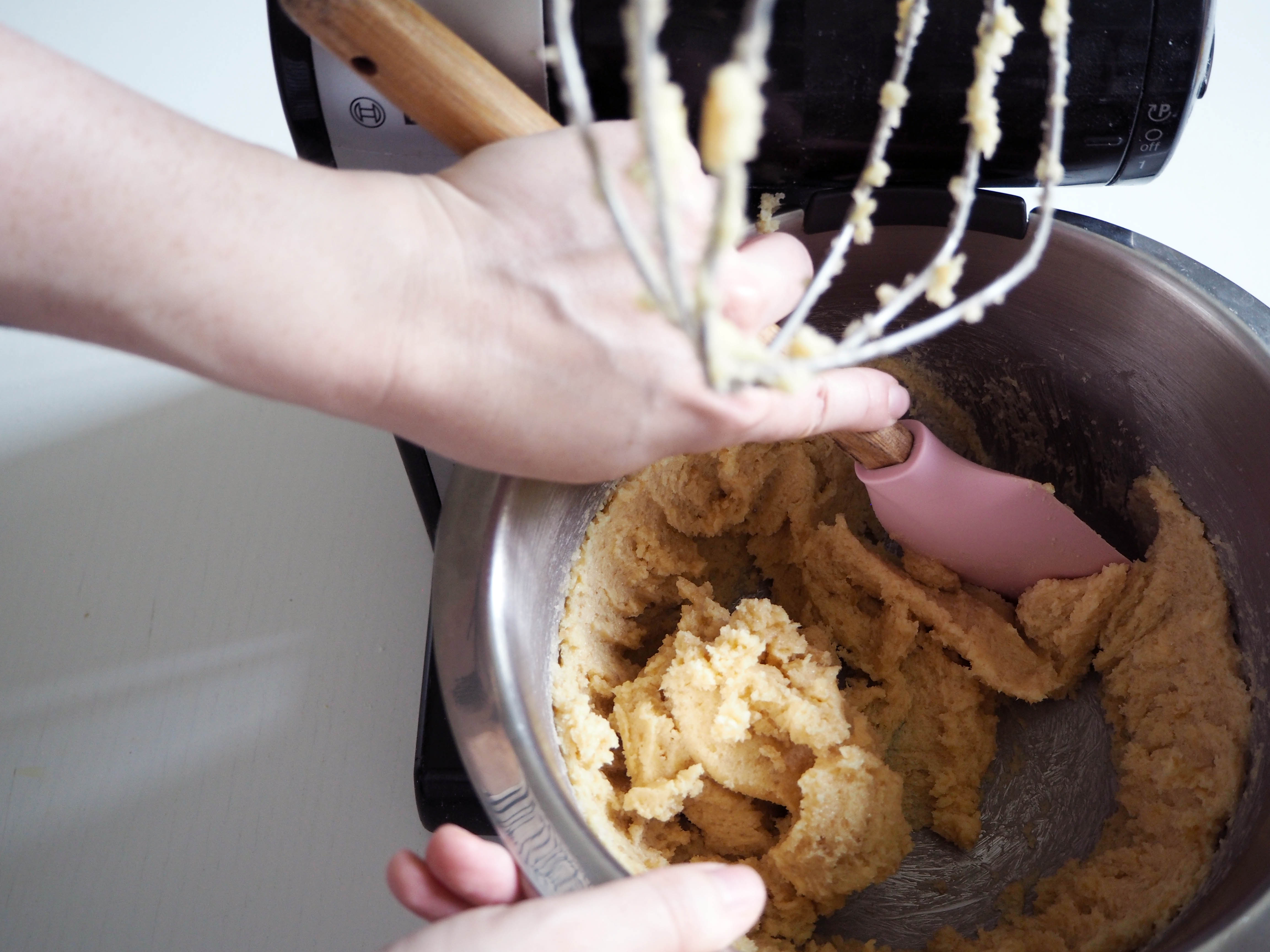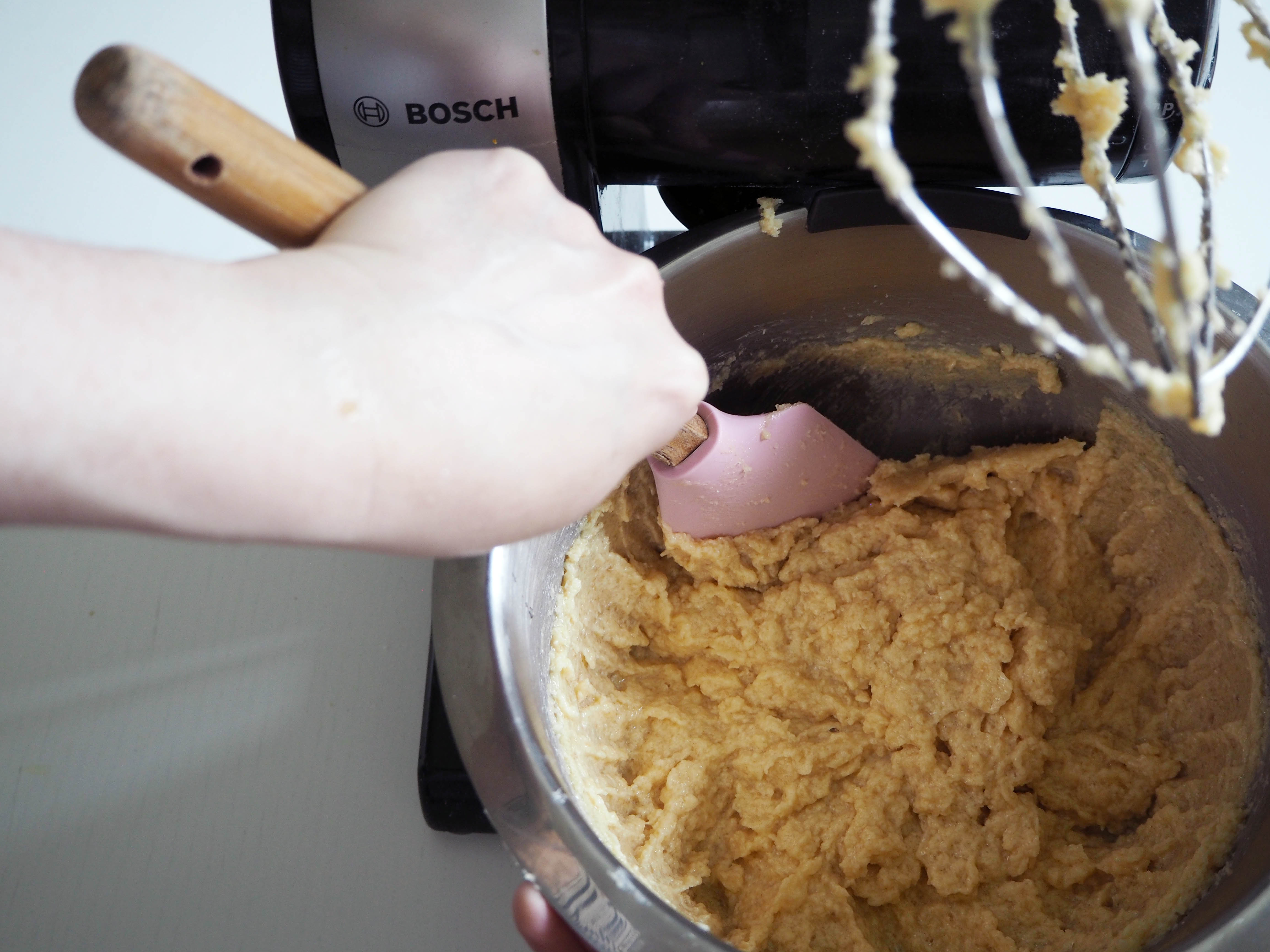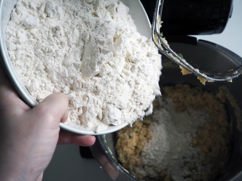 4. Add flour, baking powder and salt and mix until you have a soft, well mixed cookie dough.