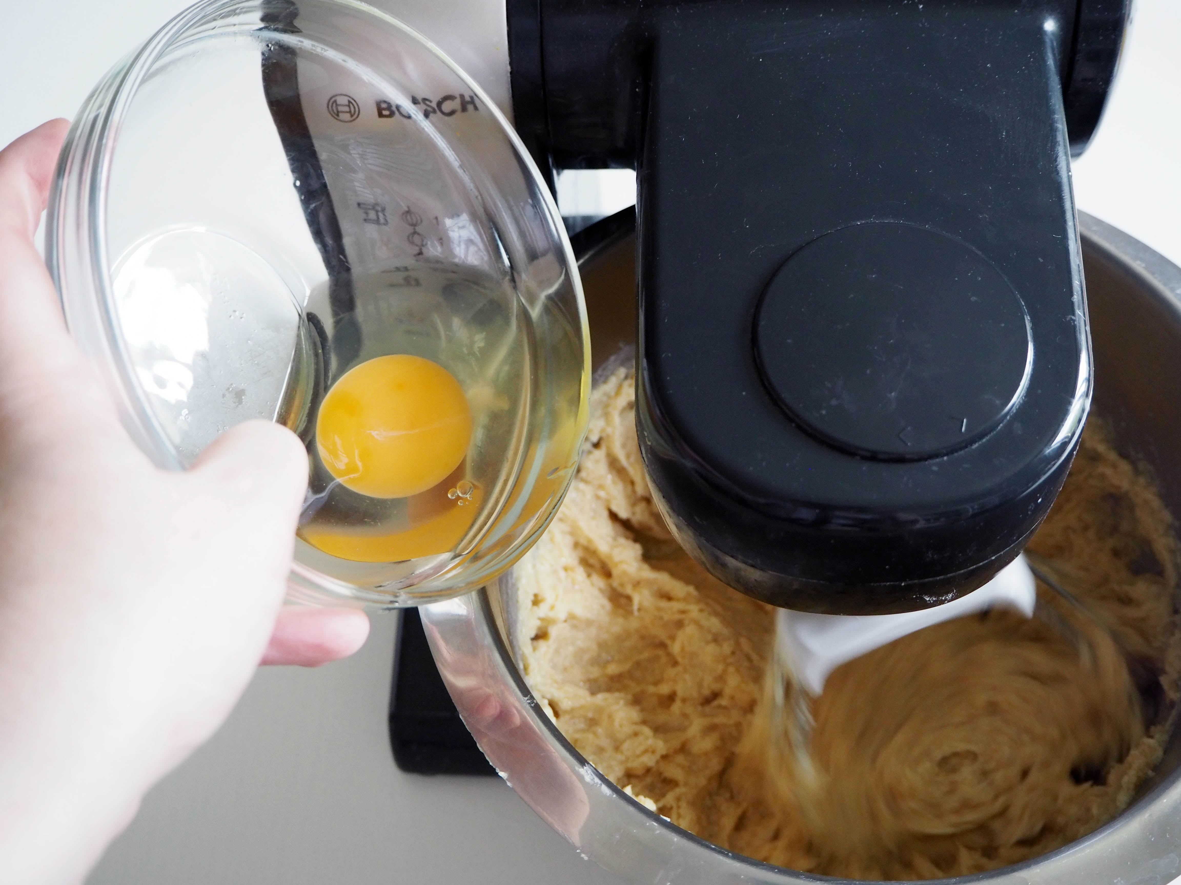 2. Add eggs, one at a time. Scrape sides if needed in between and after adding all.