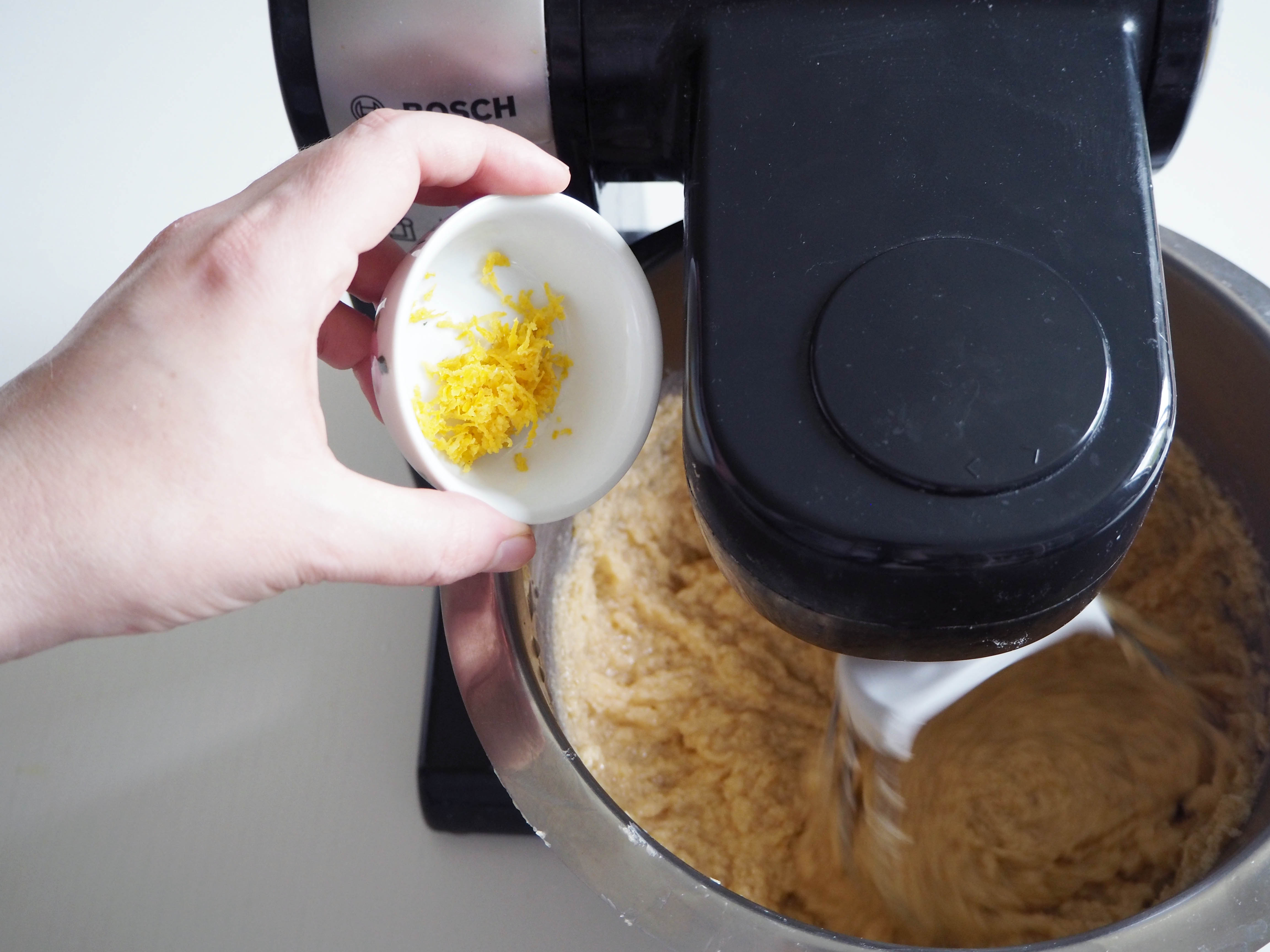 3. Add lemon juice, lemon zest and rosemary and continue mixing.