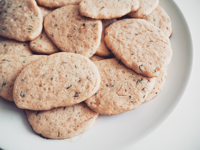 The cookies I generally make fall into “drop cookies” category. These cookies are soft but can be shaped into a ball using a spoon or an ice cream scoop and then baked after some chilling in the fridge or right away. These rosemary & lemon cookies though are my first icebox cookies, that’s why their shapes are a bit off. But the shape doesn’t take anything away from the taste!