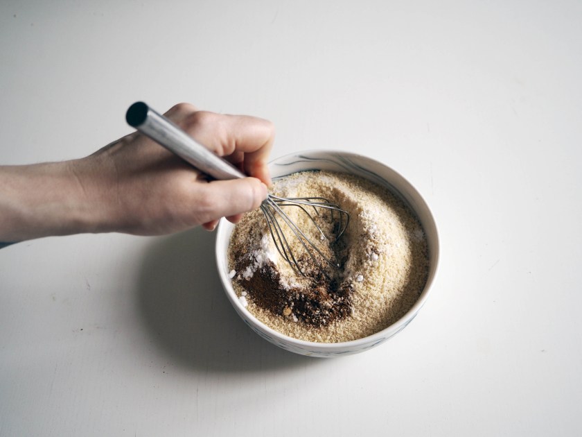 2. Mix all the dry ingredients (first 7 ingredients in the list) in a bowl and put aside.
