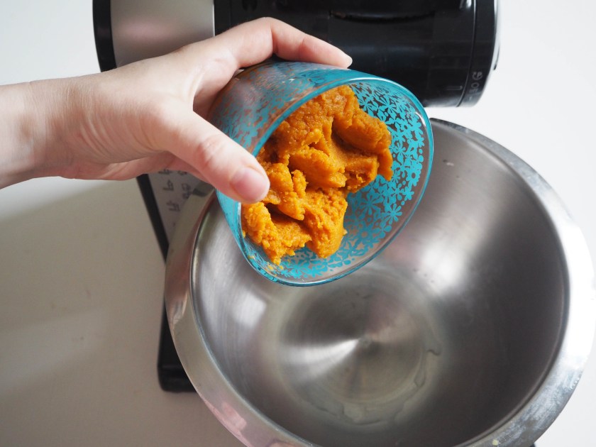 For this recipe, which is a very easy recipe by the way, I used canned pumpkin puree. In Helsinki, you can find it in big K-markets, like Kamppi or Postitalo. If you cannot find it, you can also make your own pumpkin puree. Check this recipe to make your own: http://allrecipes.com/recipe/22935/pumpkin-puree/