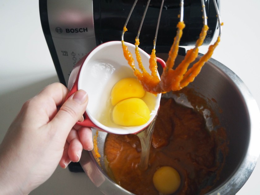 4. Add eggs to the mixture and beat until it’s a smooth mixture.