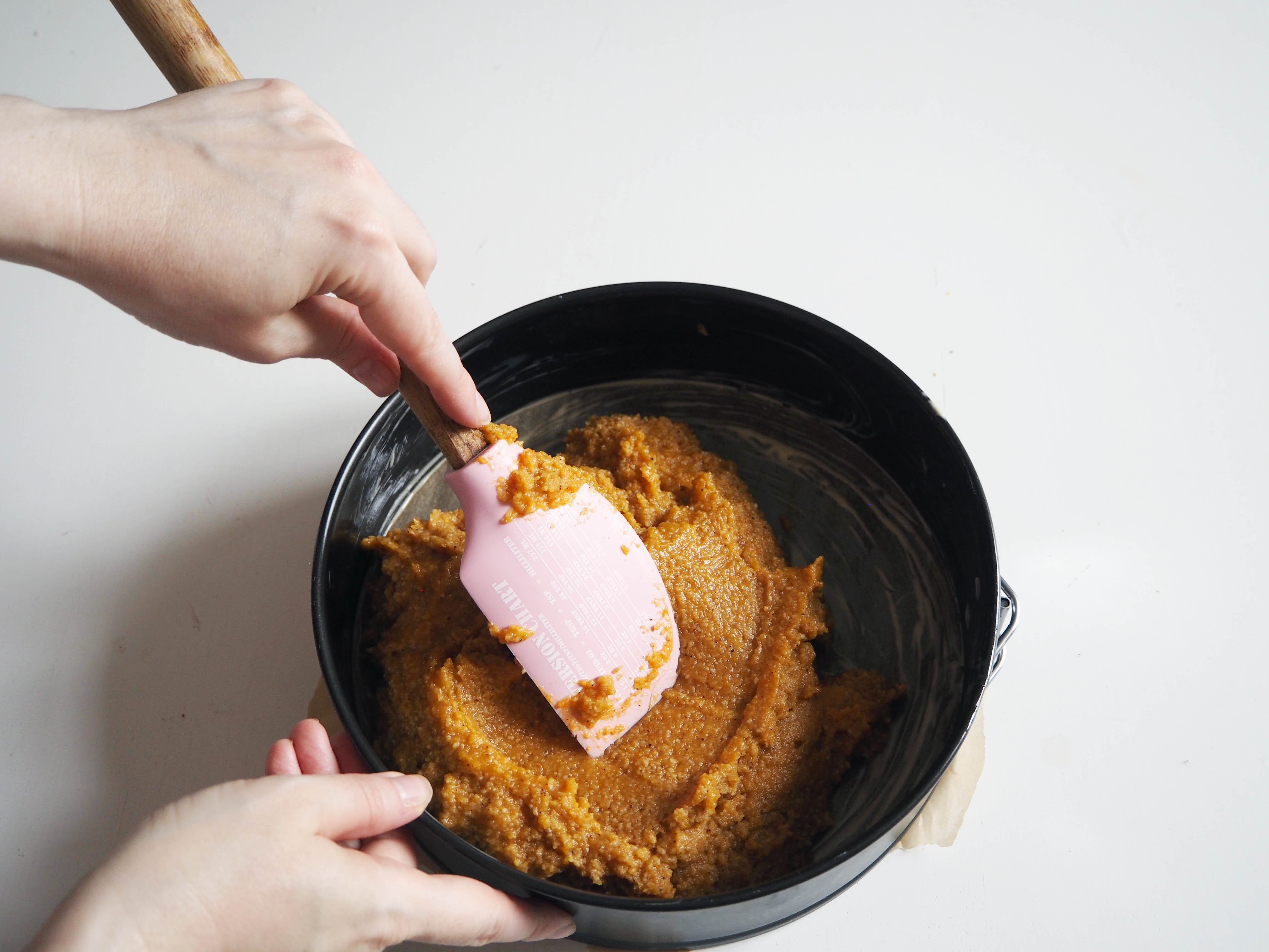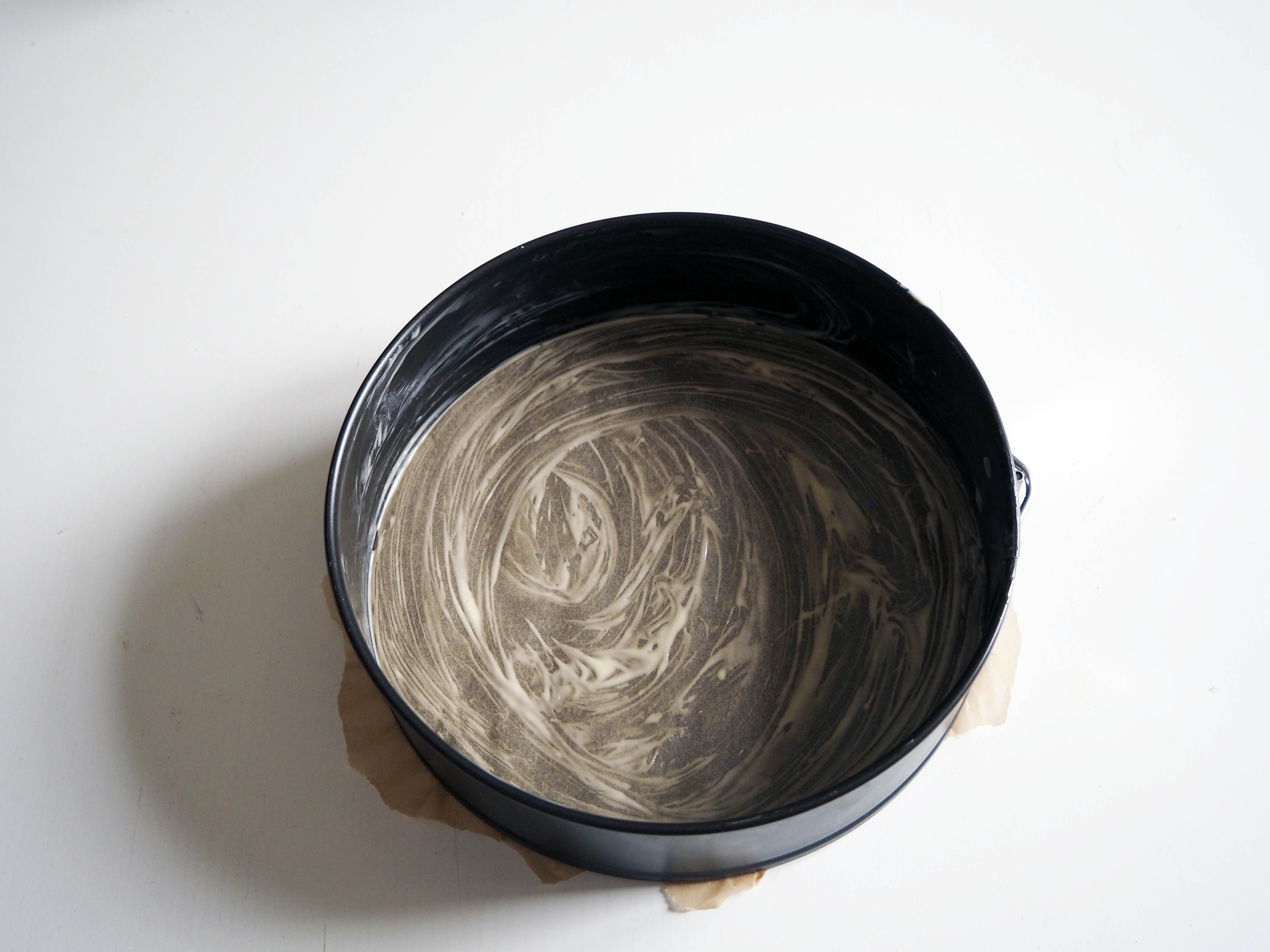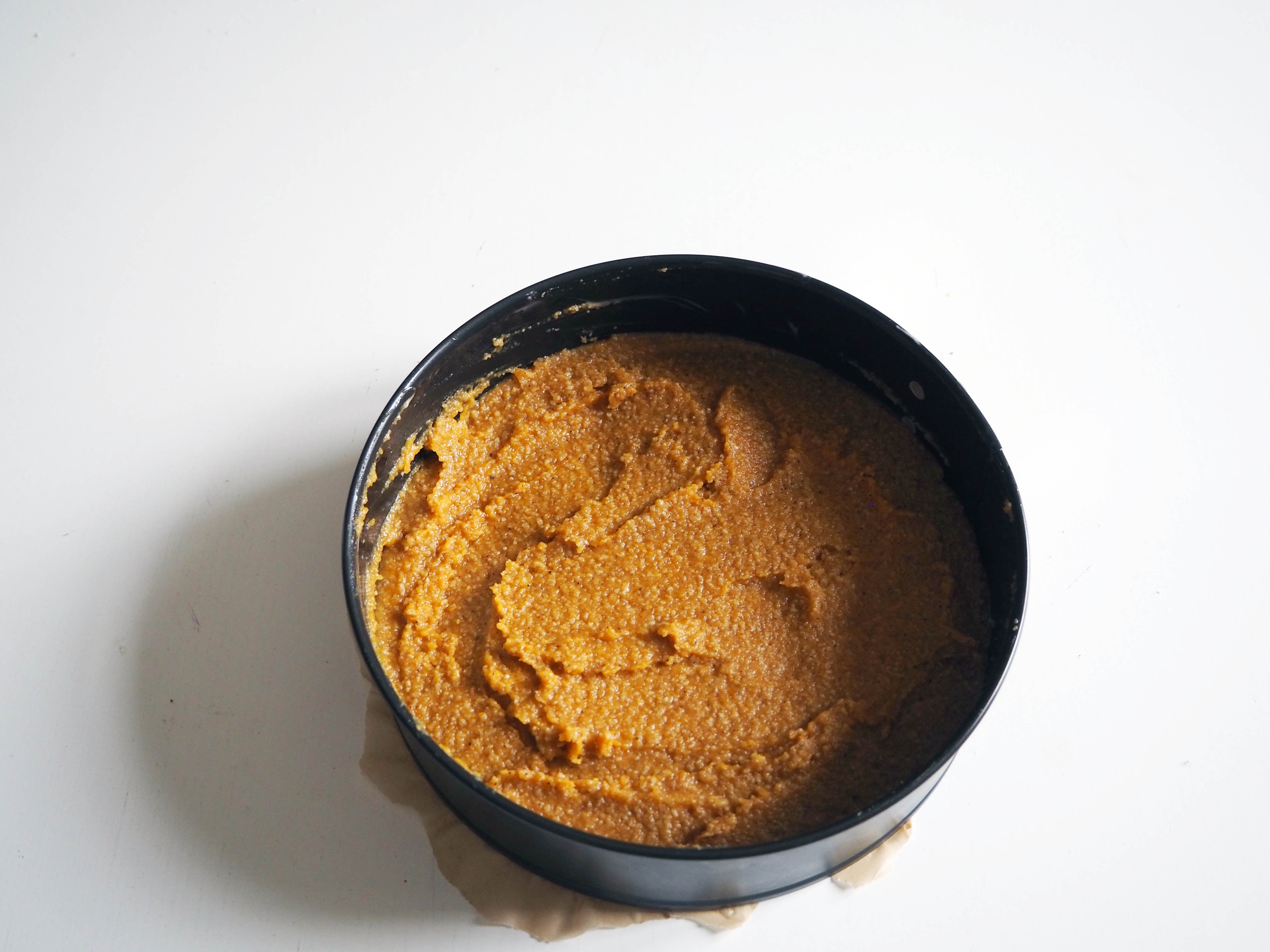 1. Preheat the oven to 180C. Butter a springform / cake pan and put a baking sheet on its base.
