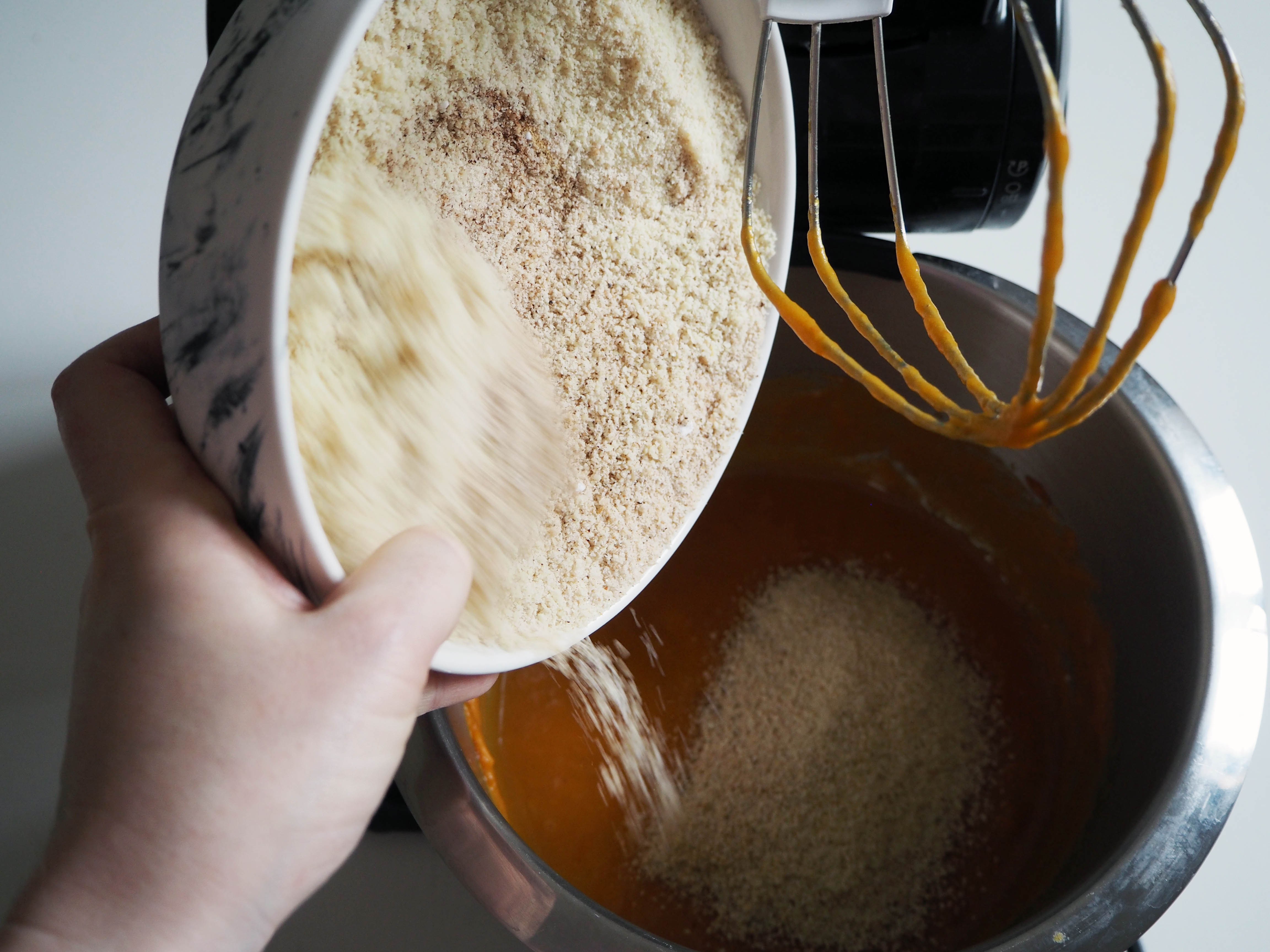 I’m super tired right now. Just came home from a catering gig after days and days of sick leave (I recovered from a horrible flu). Normally I would just go to bed and sleep, BUT, I desperately wanted this cake for this week’s gluten free Thursday. Because… Pumpkin makes me happy!