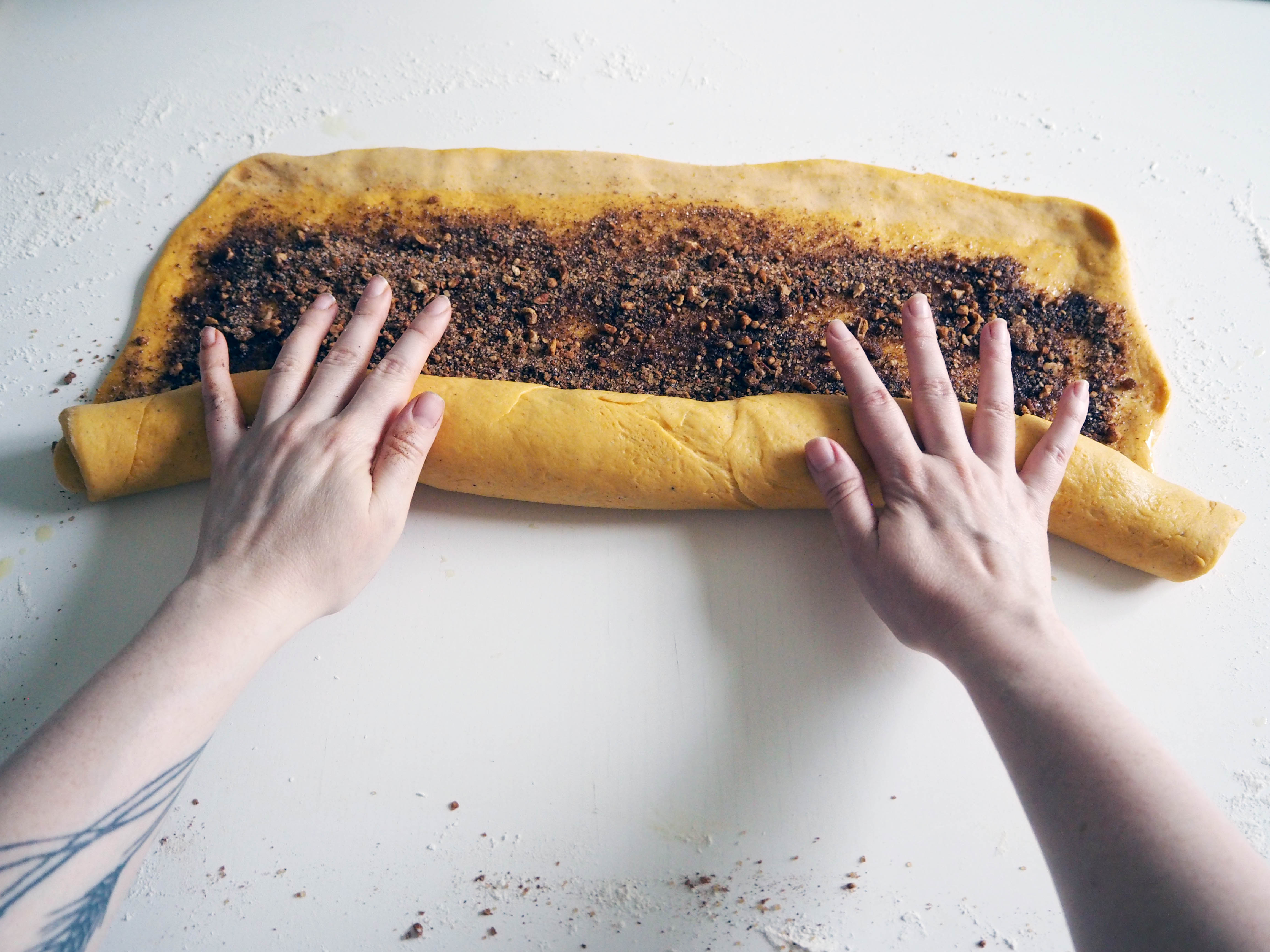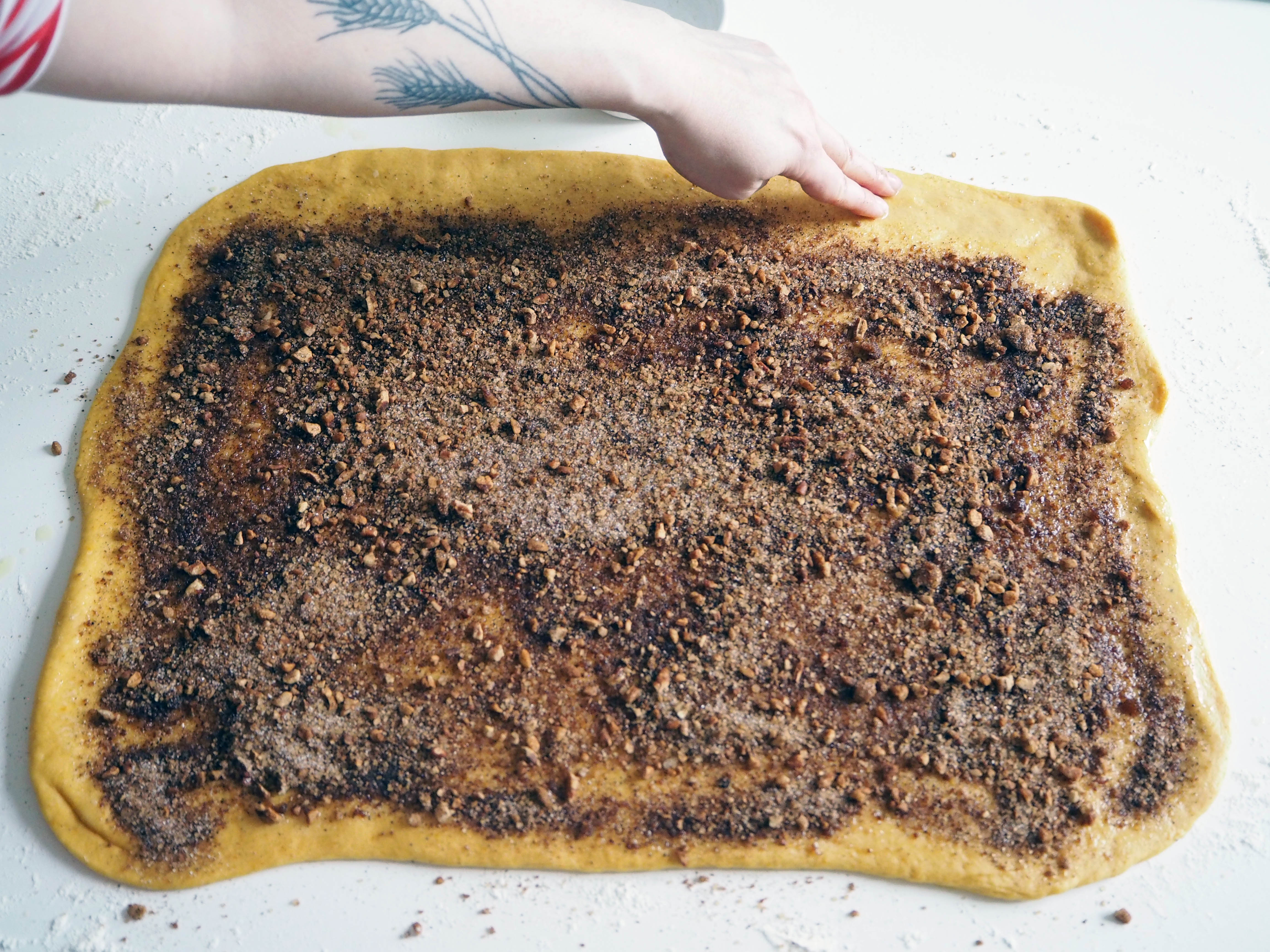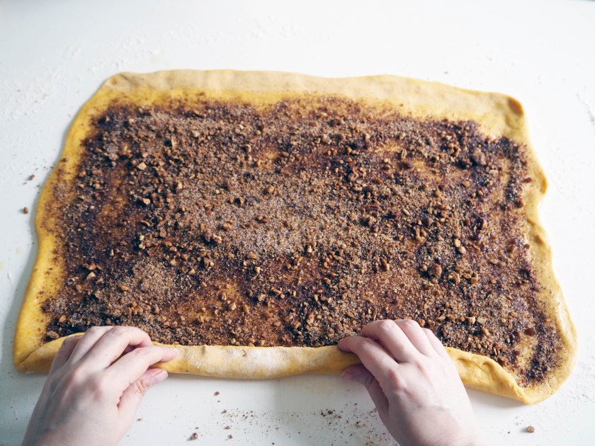 After that initial encounter though, I kind of forgot about it because I thought it was a local product and that I wouldn’t be able to find it in Helsinki. Turned out, I was wrong. I accidentally bumped into it in the cheese counter at Stockmann Herkku and jumped at it! Ever since, I’ve been looking for ways to use it in recipes, other than just putting it on a slice of bread (which is a very delicious thing to do, believe me). This caramelised sauce version just did the job perfectly as it goes great with pumpkin. Also good with pumpkin are pecans so I added pecans into the equation as well and mixed it in the filling together with cinnamon. The original recipe is from Food Wishes blog, but I changed it with my own twists and used the brown cheese sauce and the pecans.