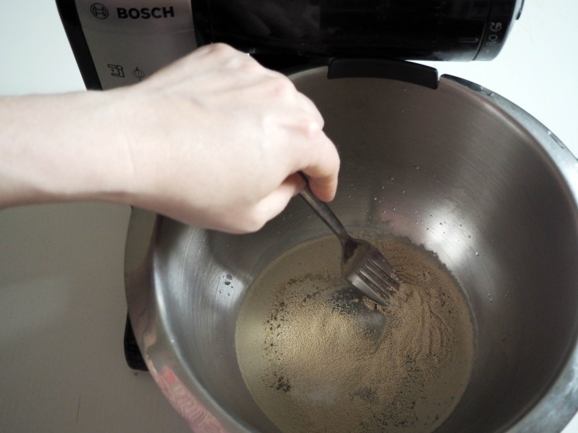 4 tbsp very warm water (warmest tap water would do, no need for boiling water)
