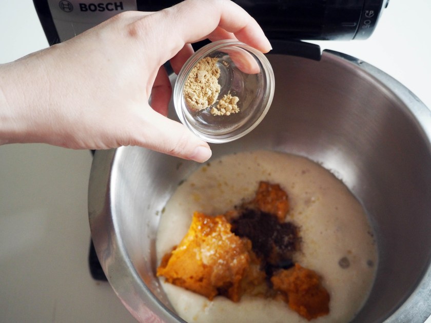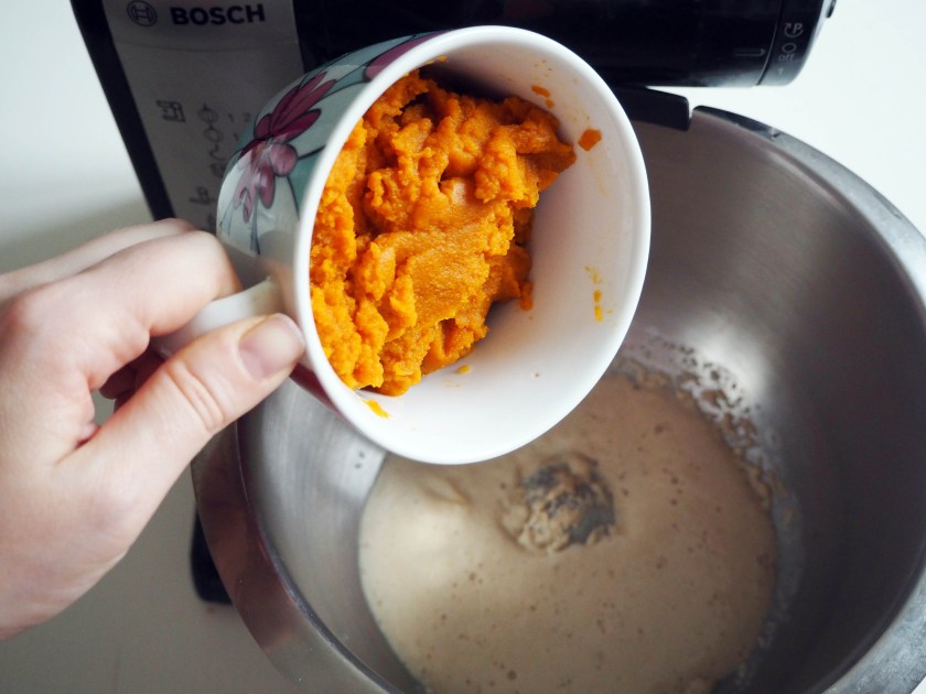 1 cup / 2.4 dl pumpkin puree (for details about where to find it in Helsinki or what to do if you can’t find it, check my previous blogpost)