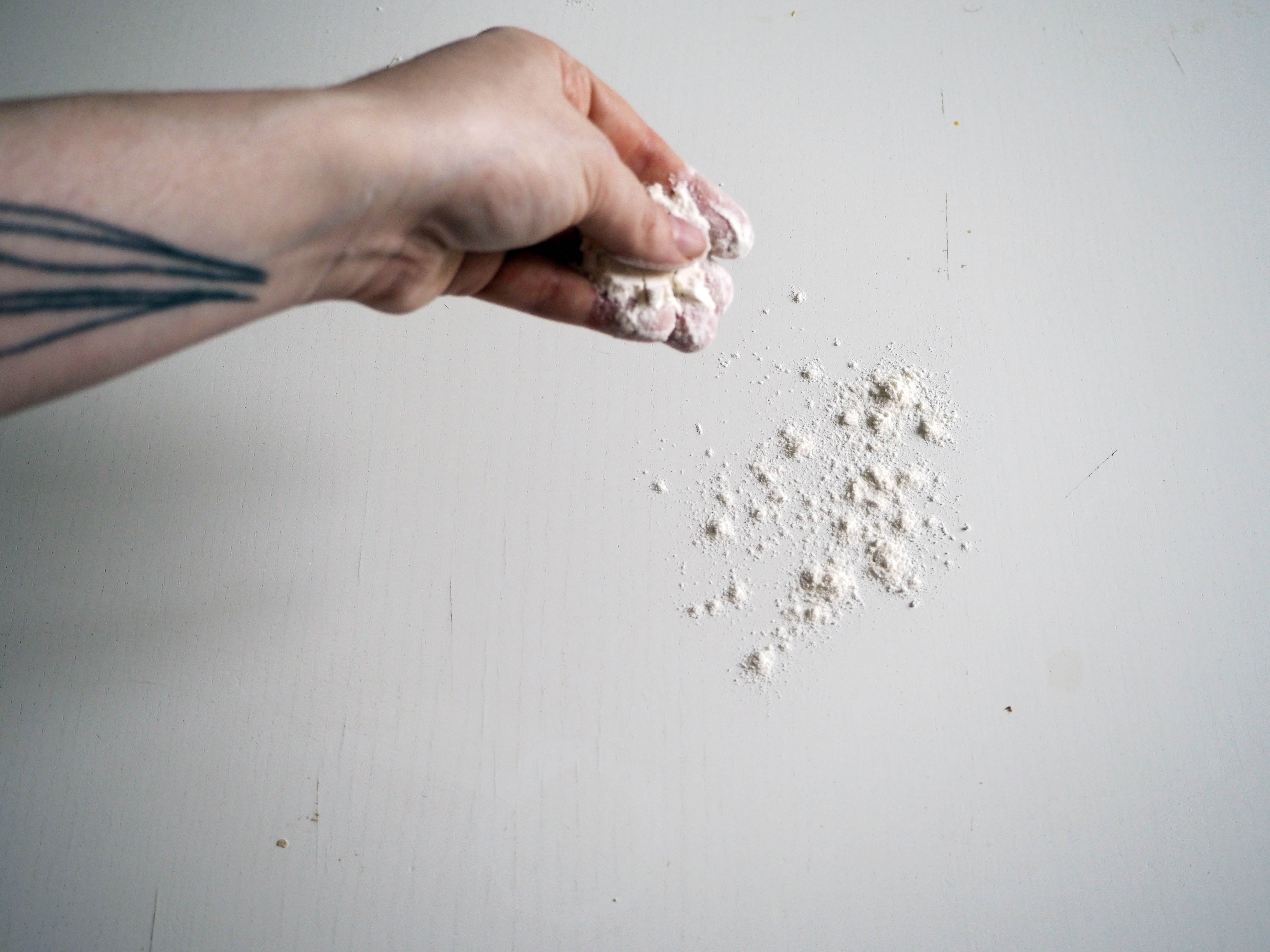 6. Flour your work surface just a little and continue kneading for 5-6 minutes until you have a smooth dough that is slightly sticky.