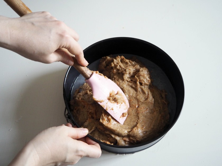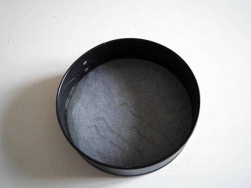 1. Preheat the oven to 180C. Grease a 24cm springform (or another kind) cake pan and line its base with baking paper, put aside.