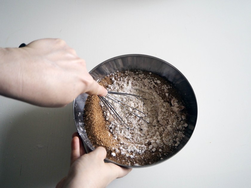 2. Put all the dry ingredients in a medium size bowl and whisk a little (dry ingredients: in the list above, starting from buckwheat flour, ending with cinnamon). Put aside.