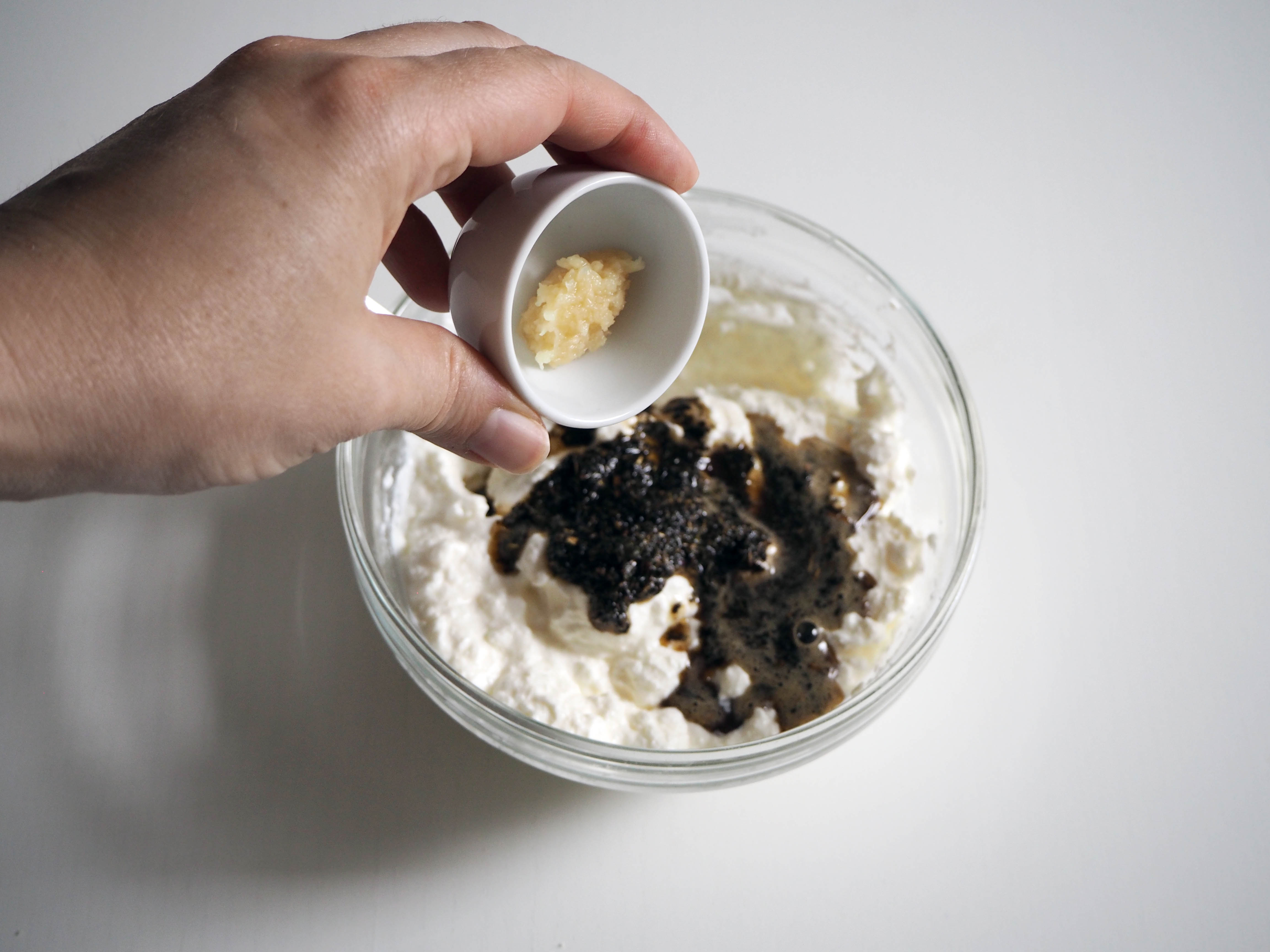 150 gr. thick plain yogurt (Turkish, Greek or Bulgarian. Try to find as thick as possible)
