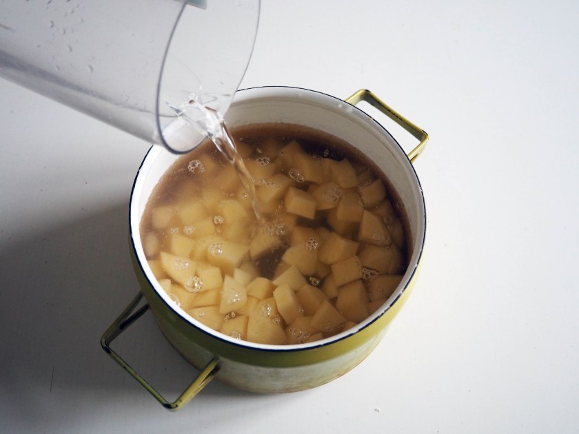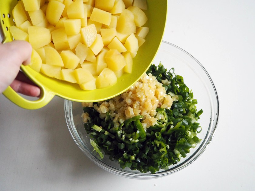 For me, the interesting thing about this recipe is how boiled and only boiled potatoes work in it. I am not the biggest fan of boiled potato to be honest, I find it quite dull and it reminds me of those times in my childhood when I was sick and my stomach couldn’t handle anything but boiled potato.