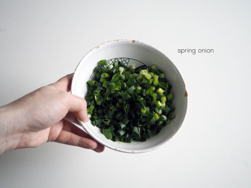 5-6 thin or 3-4 thick spring onions, sliced very thinly