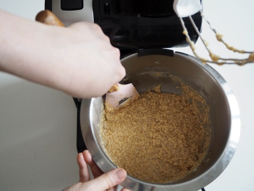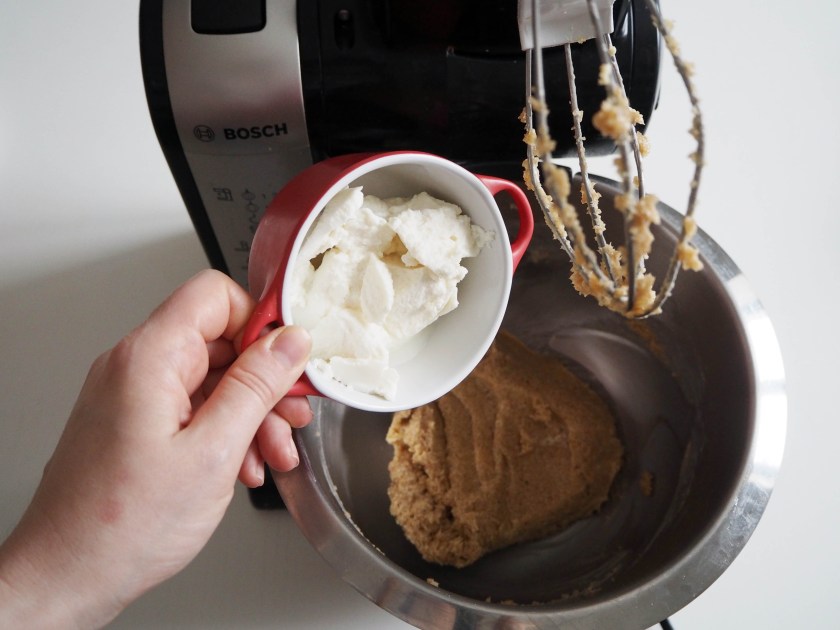 2. In a mixing bowl, put butter and light brown sugar and beat until it gets creamy.