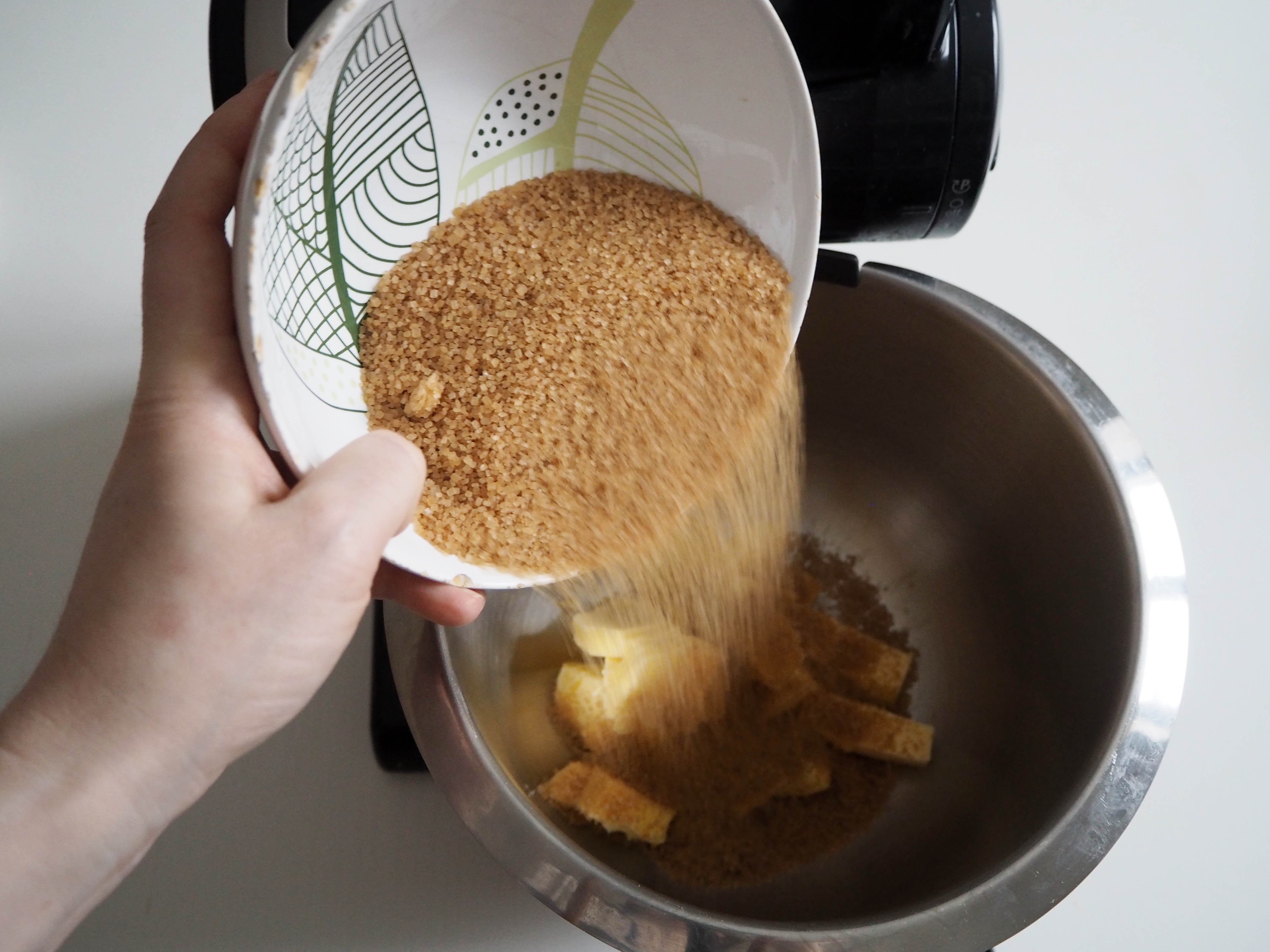2. In a mixing bowl, put butter and light brown sugar and beat until it gets creamy.