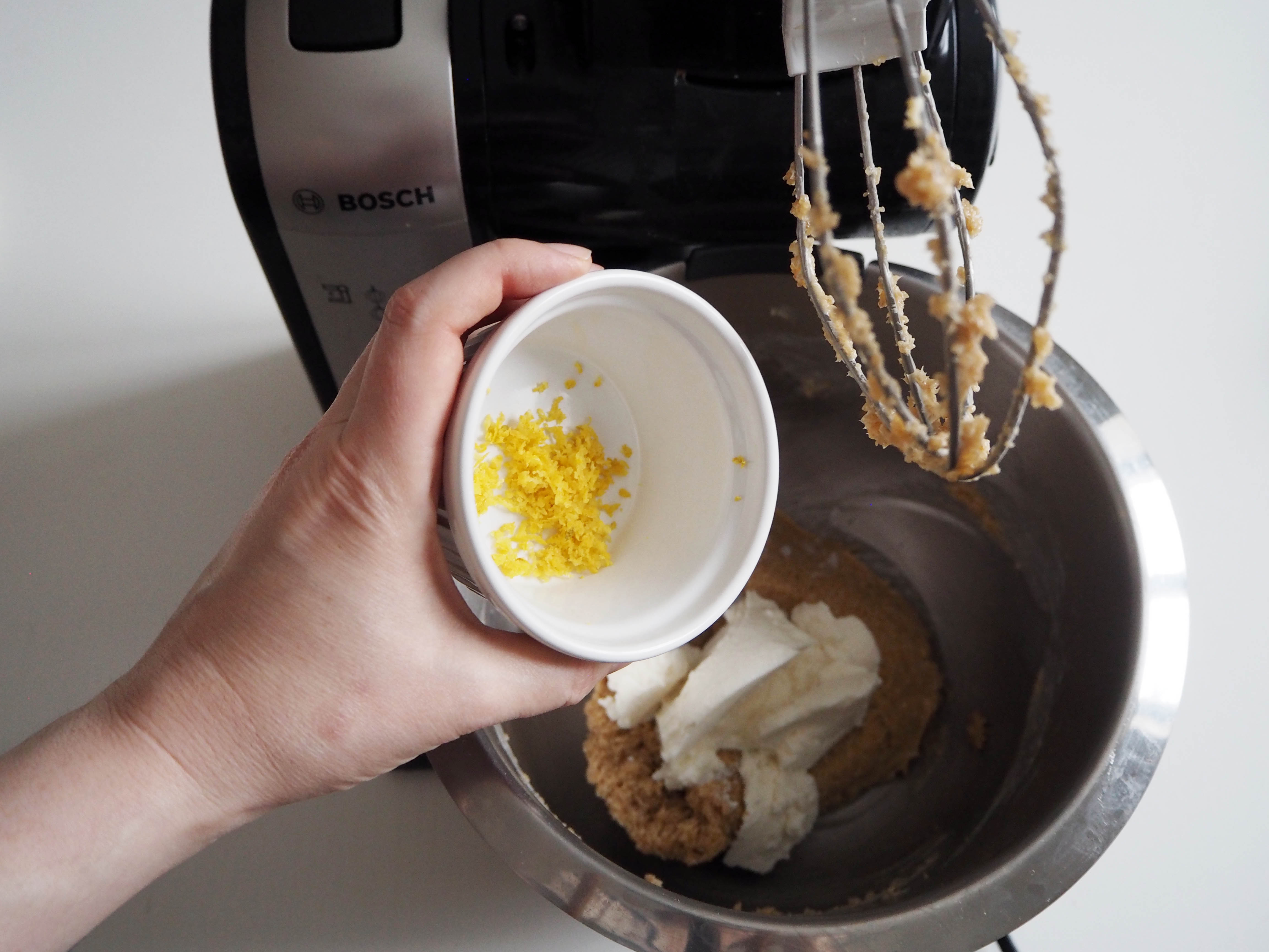 3. Add ricotta and lemon zest and continue beating until it’s a smooth mixture.
