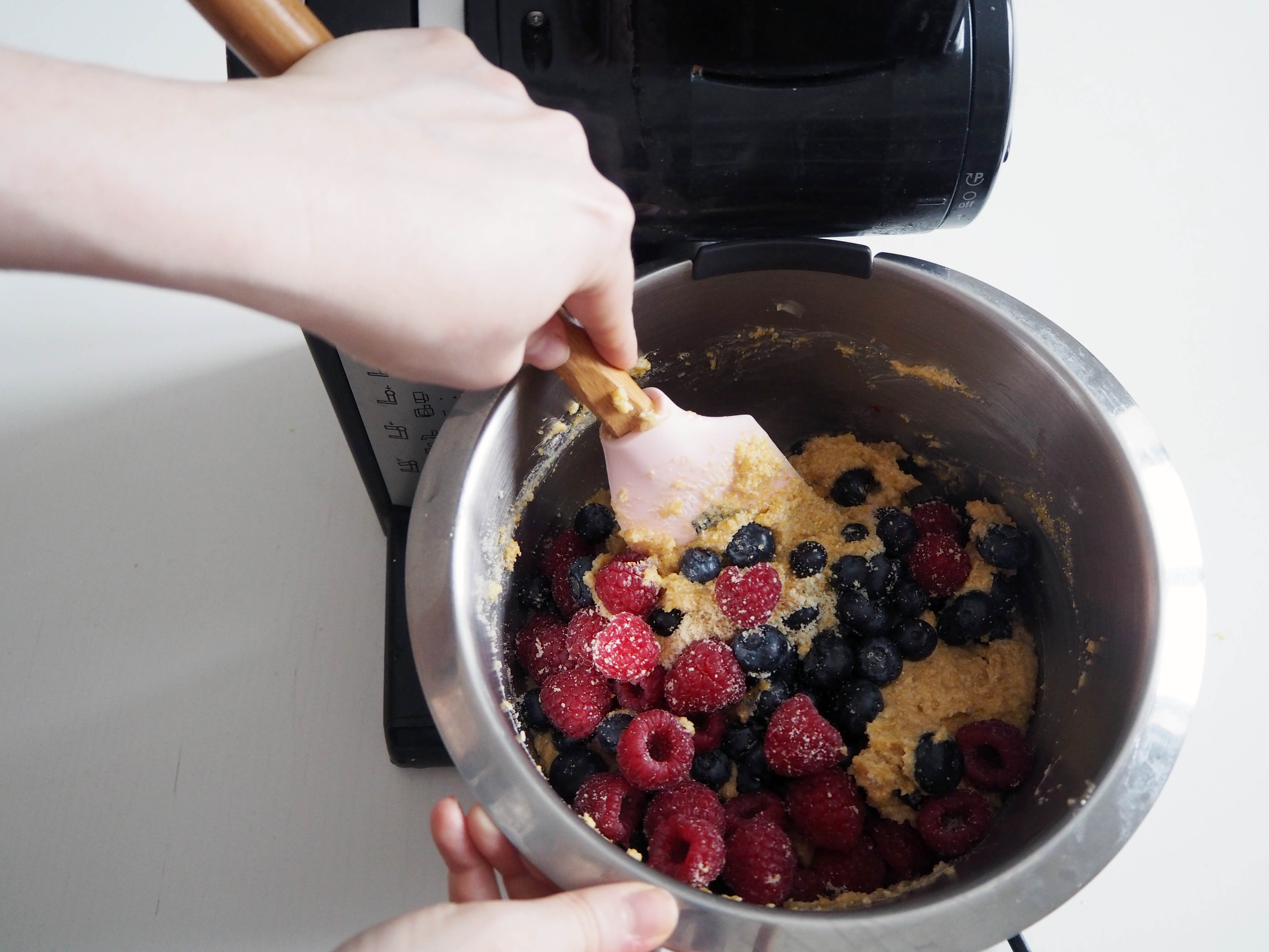 6. Fold in blueberries and raspberries gently – try not to break down the berries.