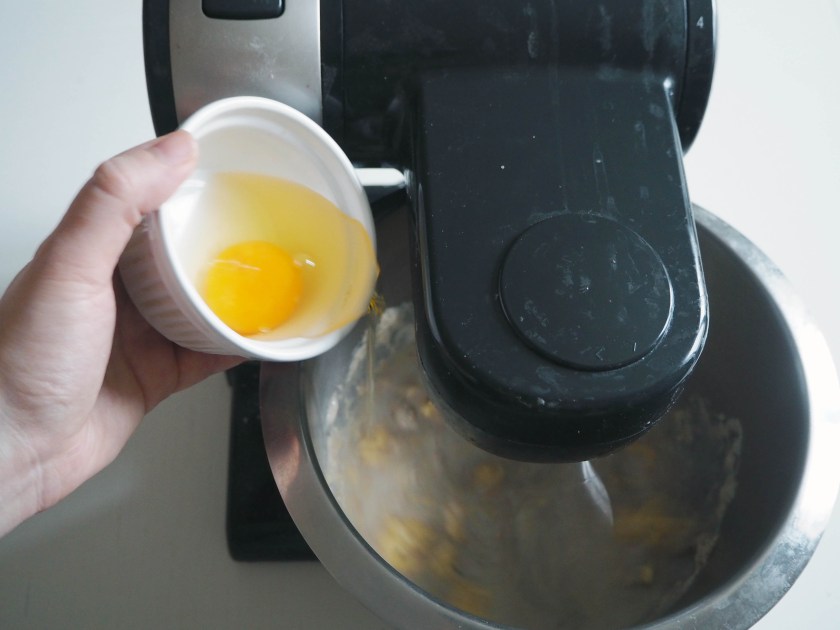 4. Add egg and continue mixing. Scrape sides of the bowl using a spatula if needed.