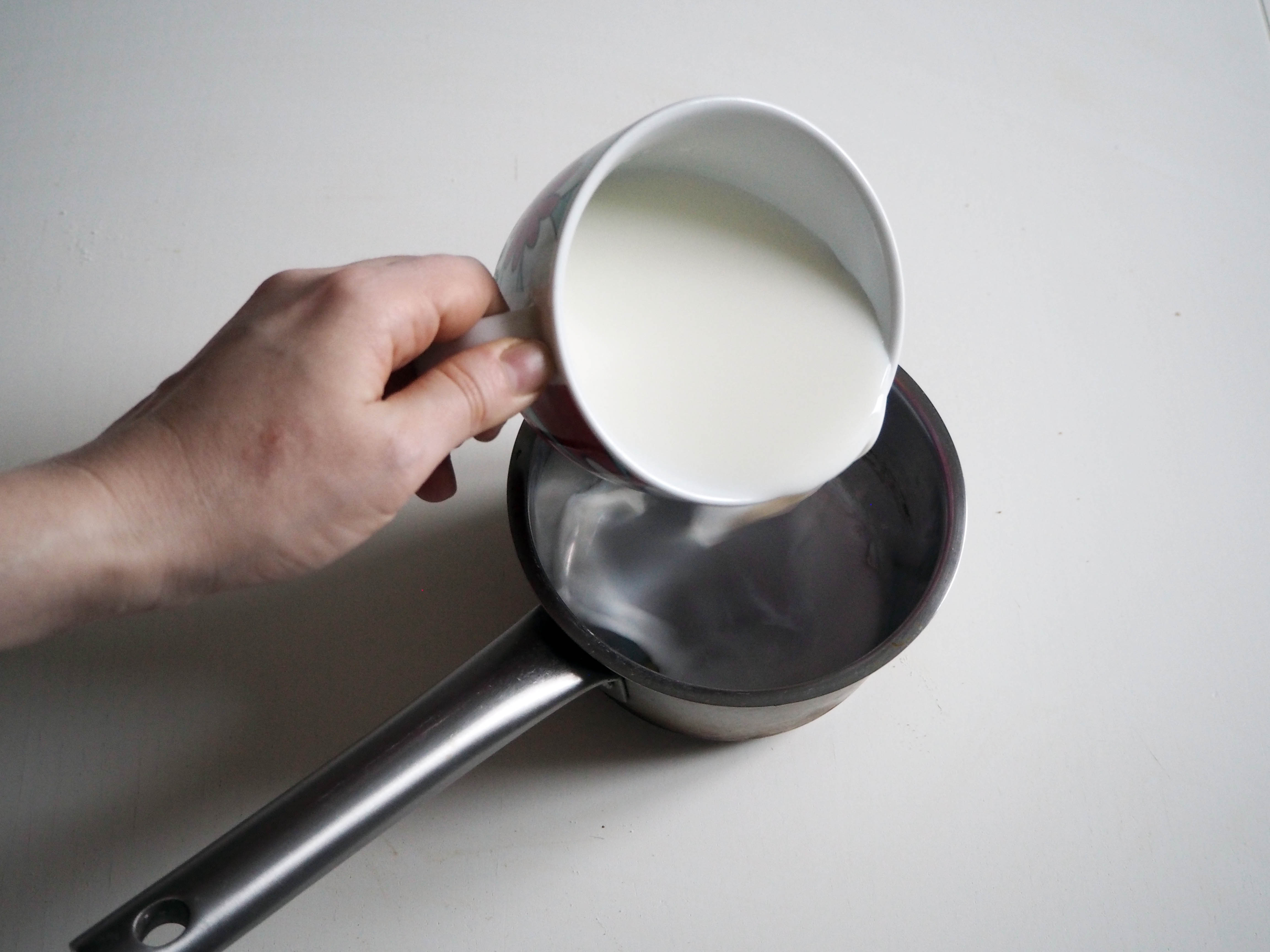 1. In a small pot, heat the milk to lukewarm (warm to touch but not too warm to burn).
