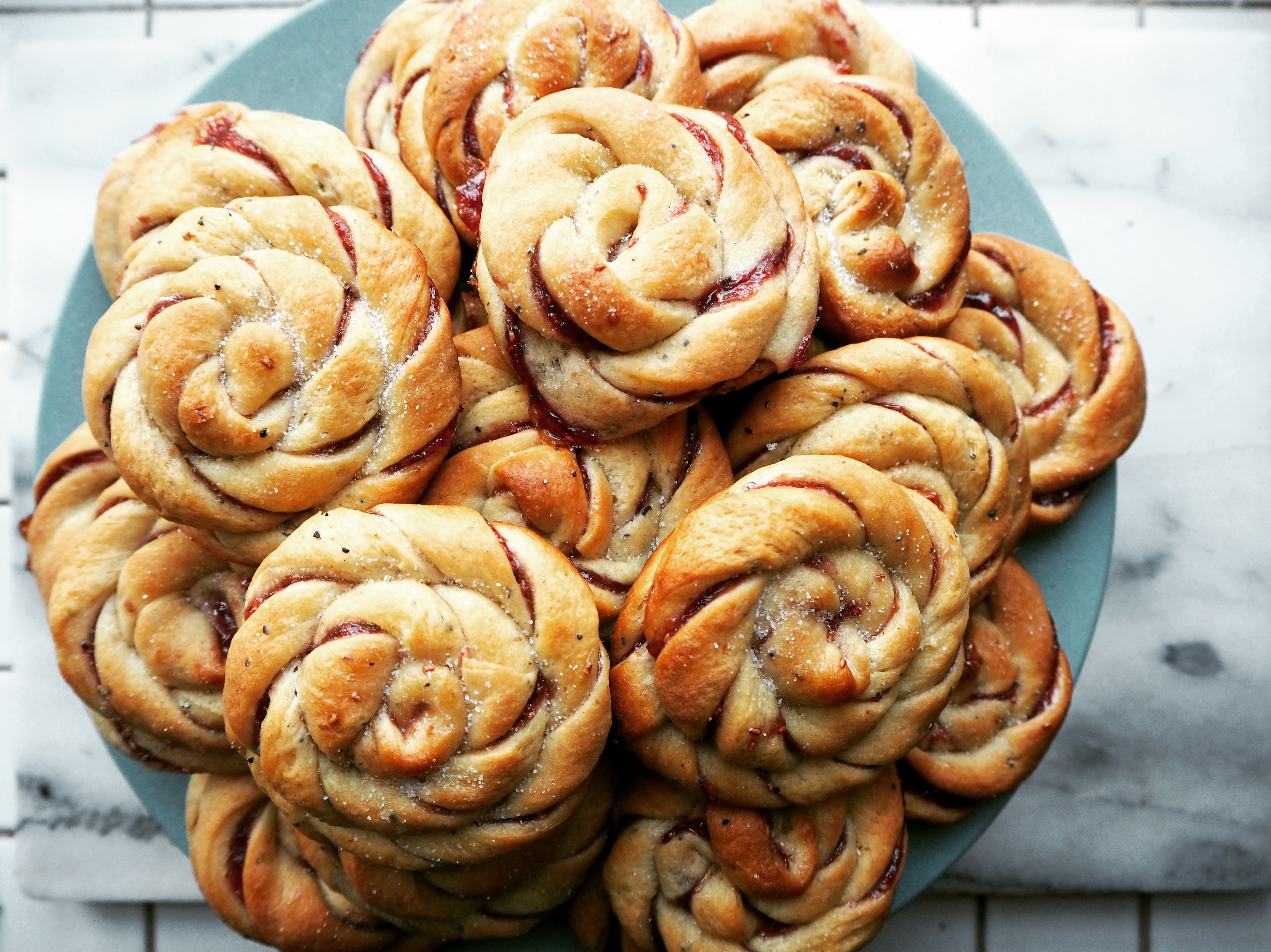 I have been planning to make these buns for almost 3 months. I made poppy paste buns before with this shape (recipe is here) and I loved it (this is generally Swedish cardamom bun’s shape). So I wanted to try something different this time, using the same shape.
