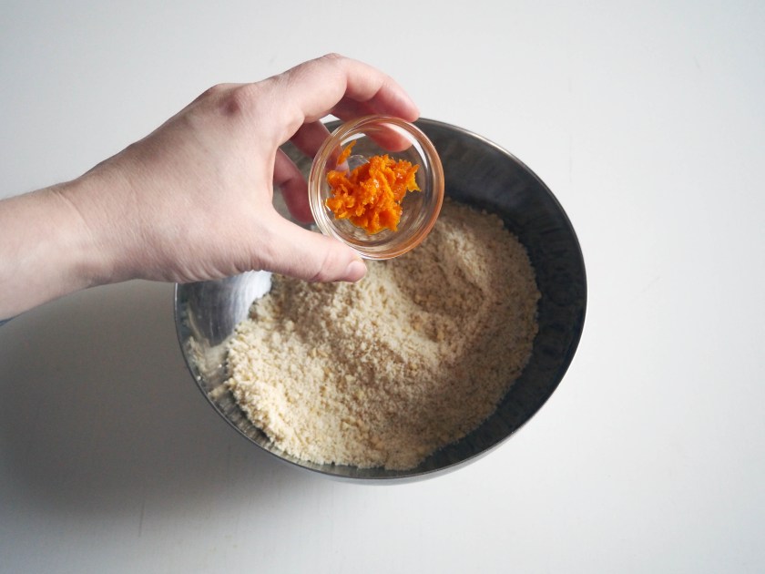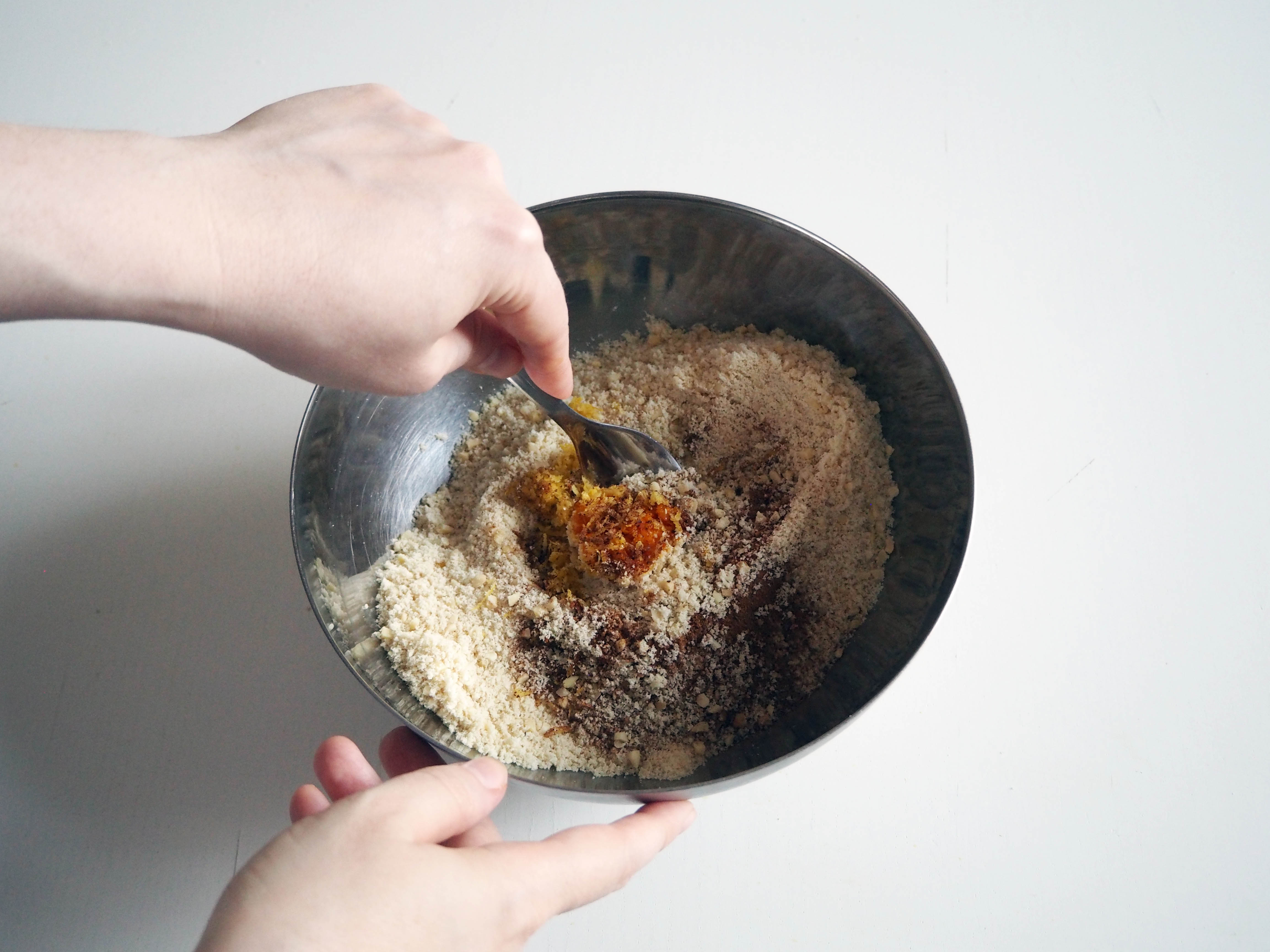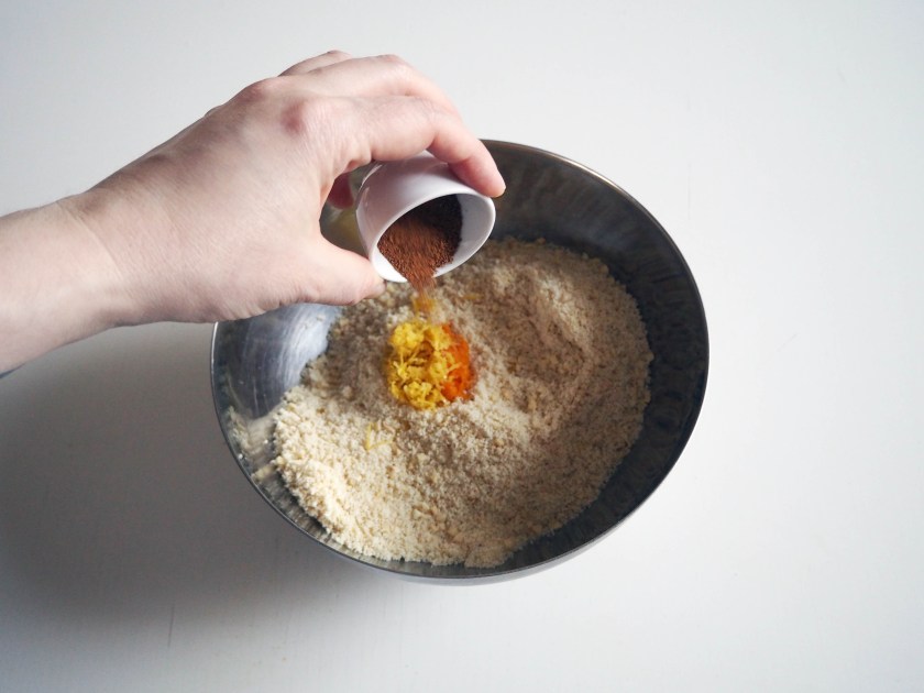 2. Mix almond flour, zest of orange, zest of lemon and cinnamon. Put aside.