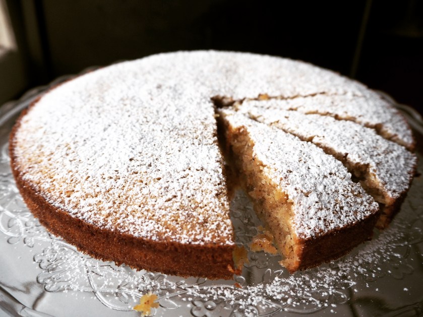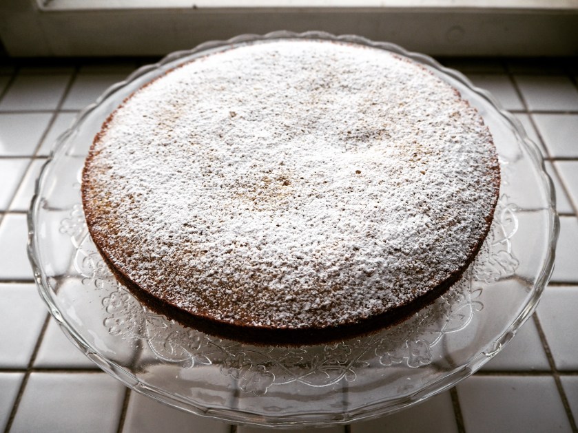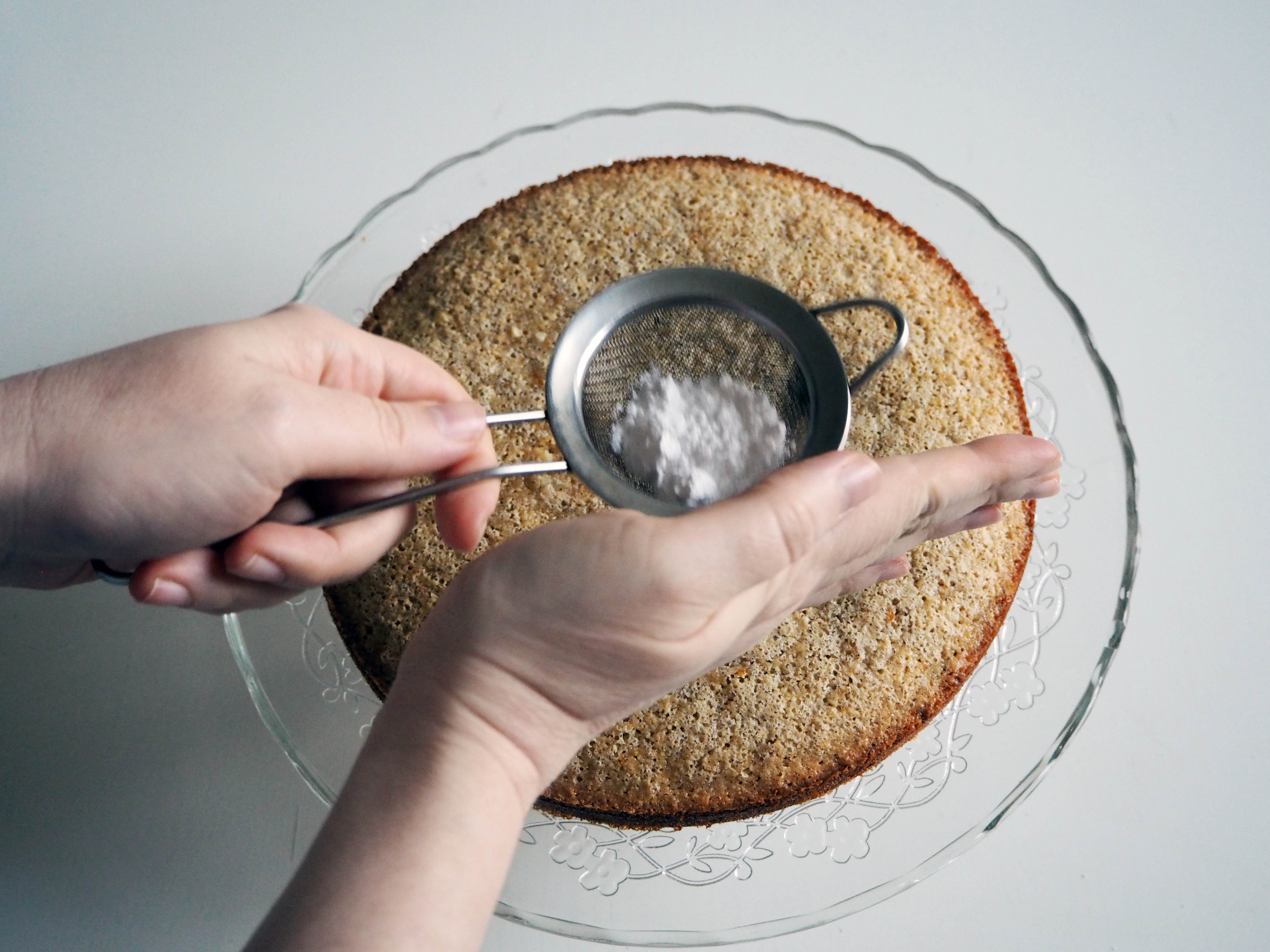 6. Let the cake cool in the pan for at least 10-15 minutes, or even more if you have time. When it cools down, take it out of the pan and transfer to serving plate. Spread some powdered sugar on top (I recommend a thin layer). Enjoy your cake with some fresh tea or coffee!