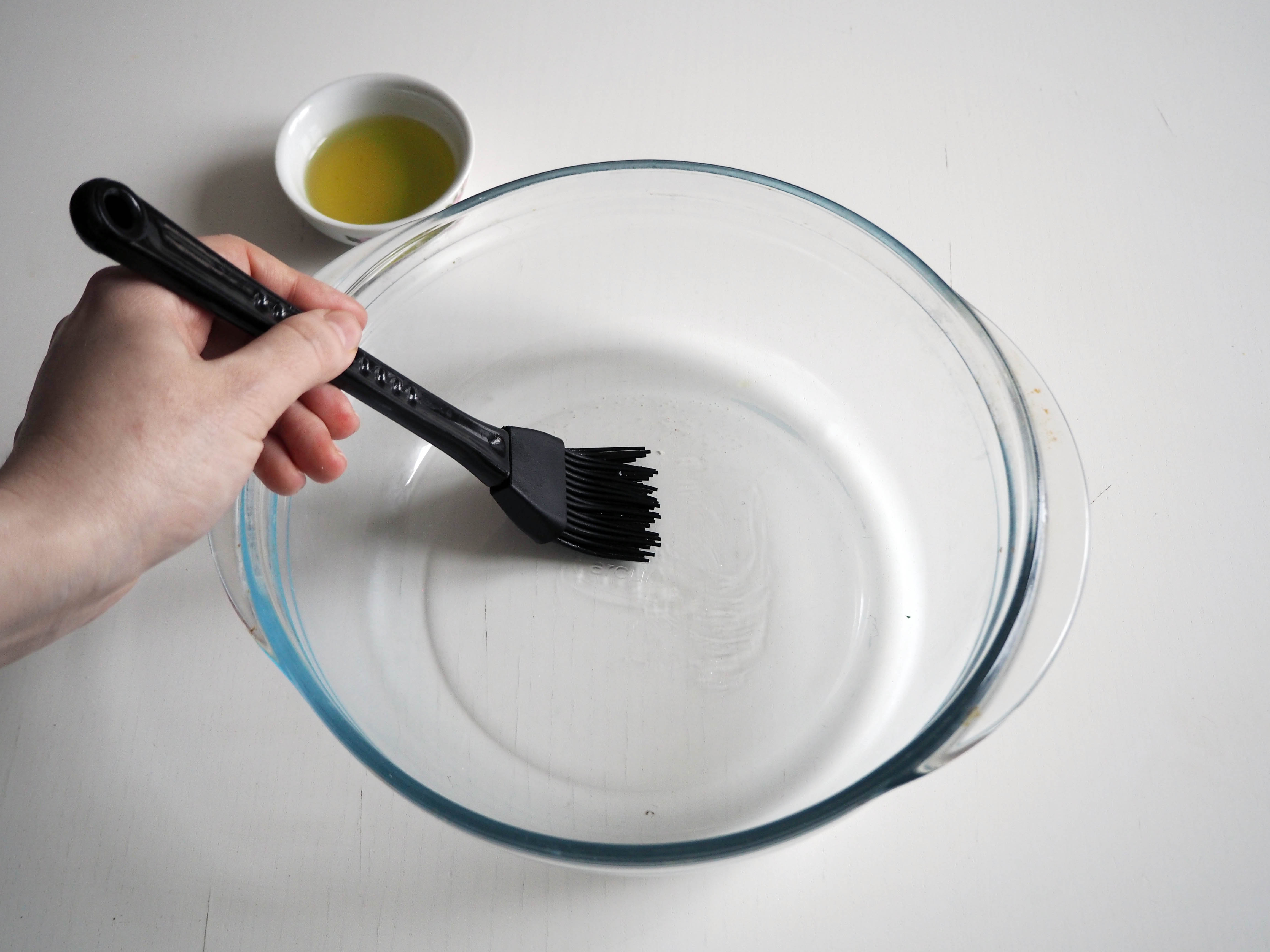 4. Grease an oven dish with some of that 1 tbsp olive oil.