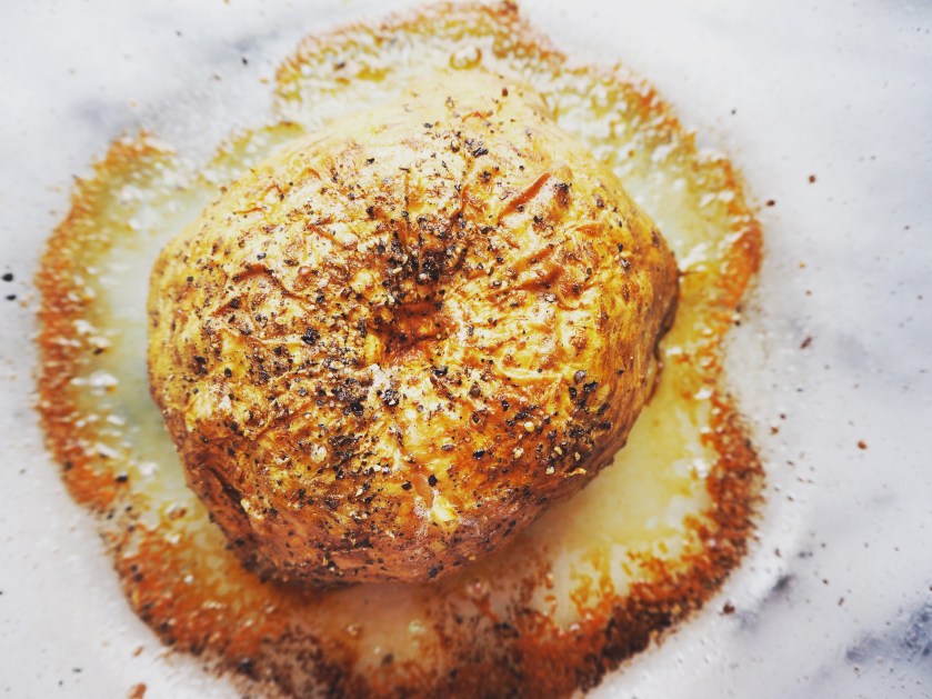 Ever since I was a kid with a very picky appetite, I loved celeriac. I loved everything about it. I loved its taste, its smell, its weird shape. For years I ate it the same two ways, one as my mother cooked with onions and peas and carrots, the other as raw salad with mayonnaise. And I was happy. Just when I thought it couldn’t get any better and tastier, I ate a whole roasted celeriac dish in a quite hipster restaurant in Berlin in October 2016, and it changed my life. I knew, after that moment, that celeriac was the most amazing vegetable.