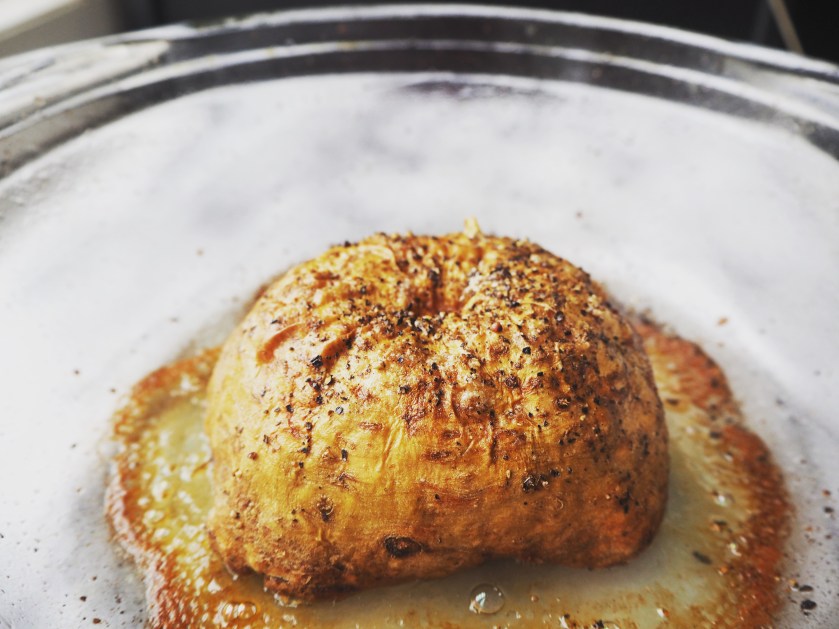 Celeriac tastes refreshing, a bit sweet and very aromatic. It is soft and juicy when cooked well. This version is even softer, juicier and has a very intense aroma. When I was eating it today, I felt like there was a festival inside my mouth – the same feeling I had when I ate it in Berlin.