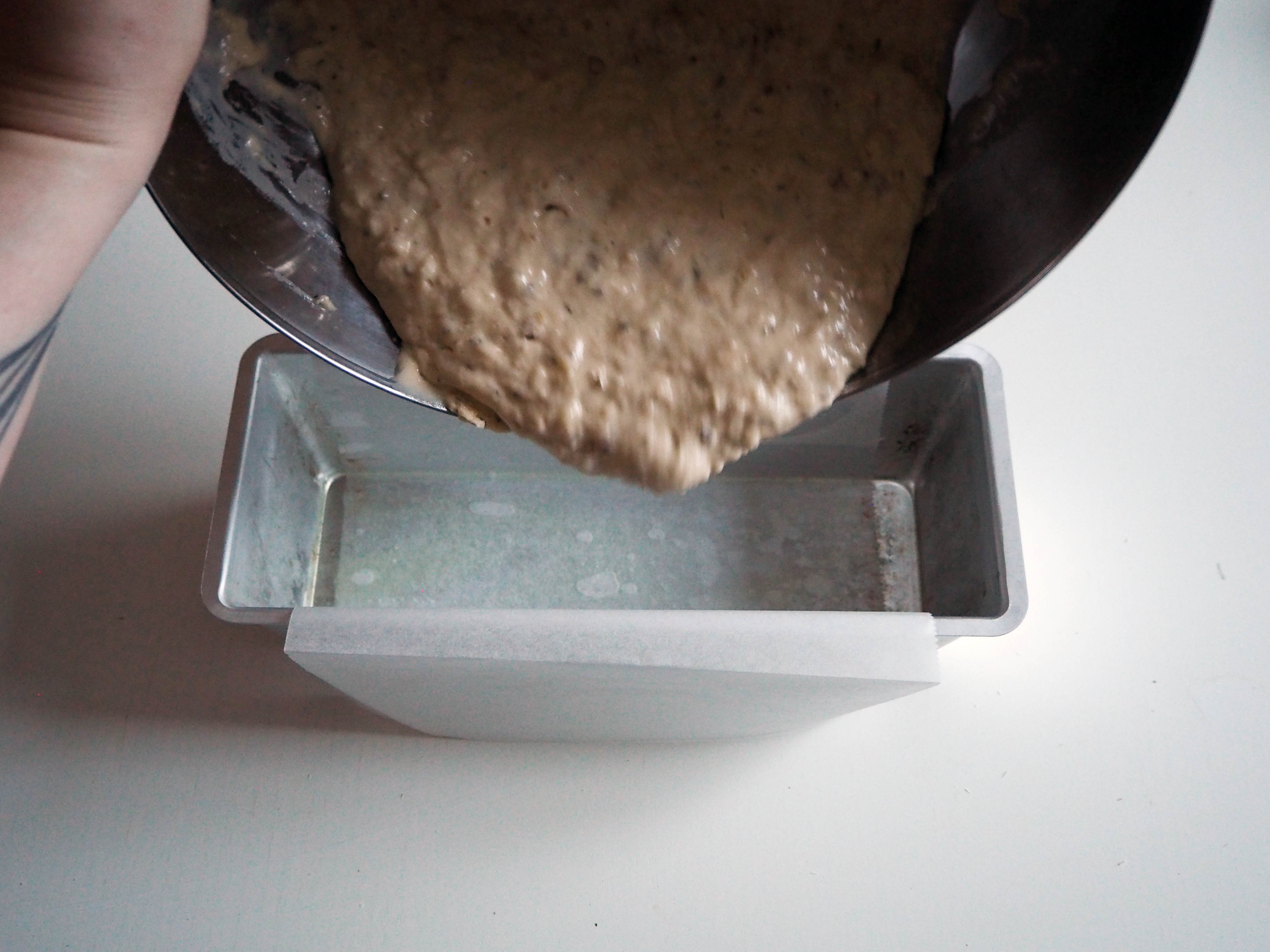1. Preheat the oven to 180C. Grease your loaf pan and put a baking paper at the bottom (I also cover two large sides to make it easy for the cake to come out).