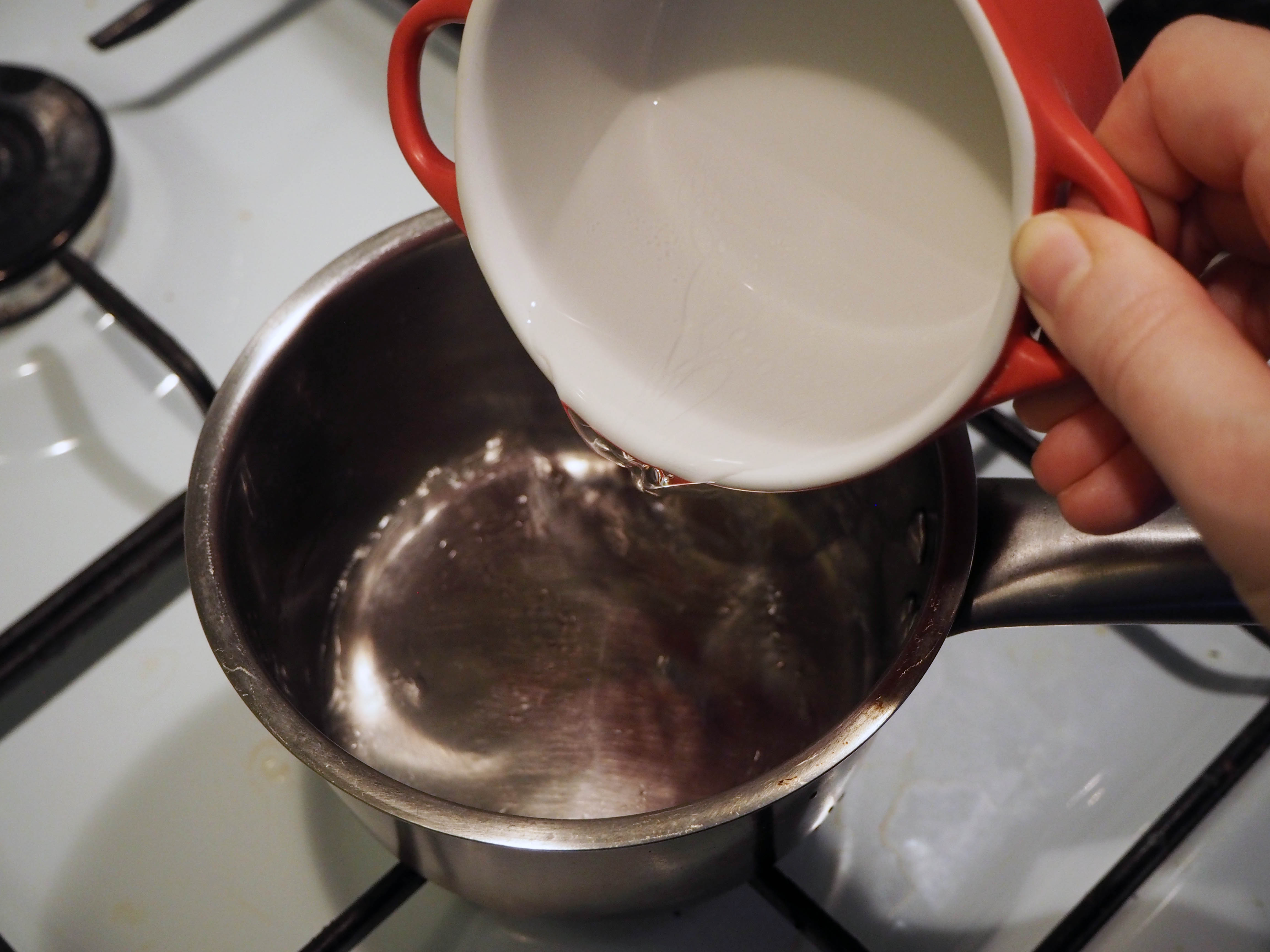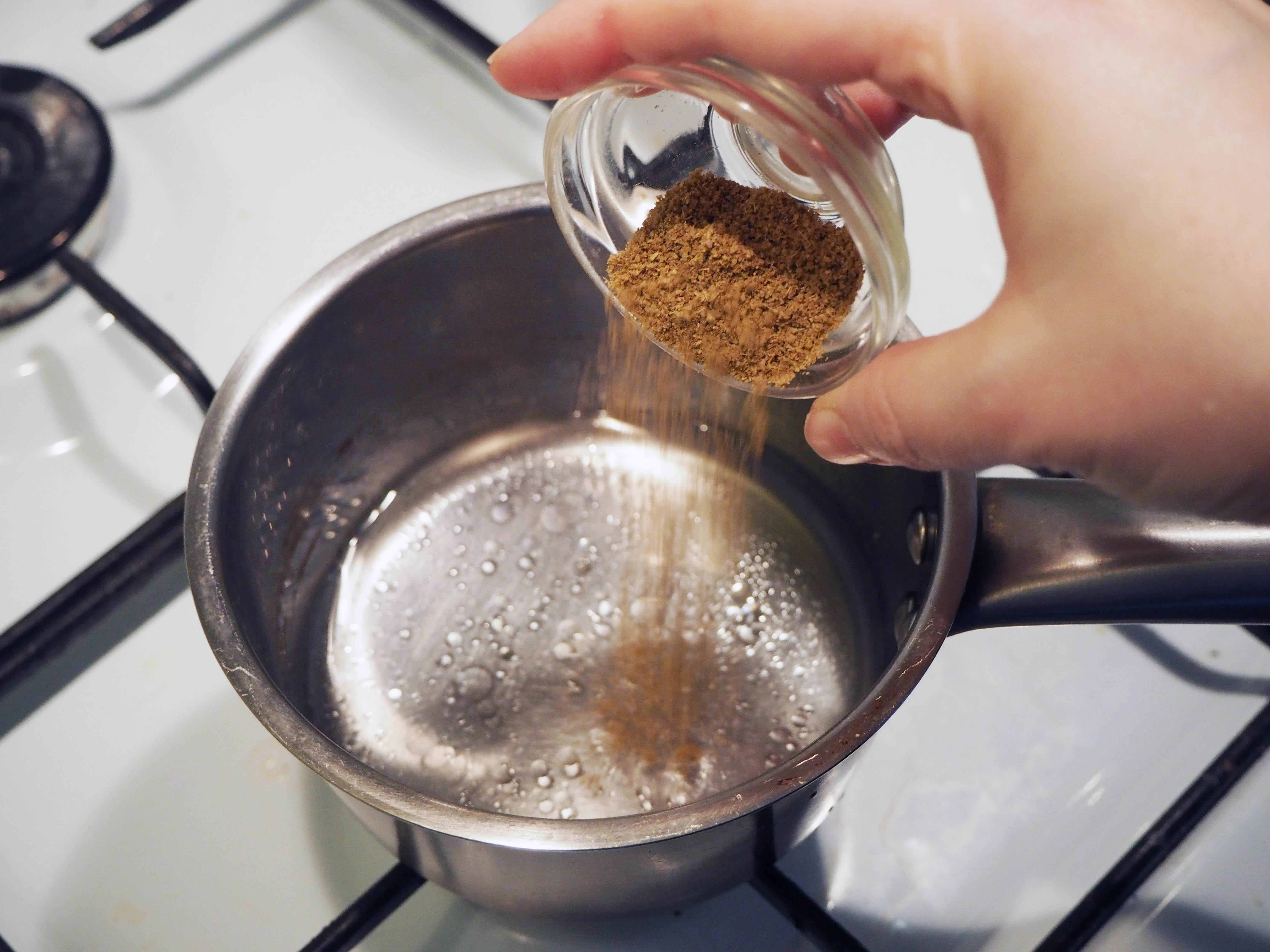 2. Put water and ground aniseed in a small saucepan. Whisk a little and warm it until it gets boiling. Keep it boiling for 2 minutes.