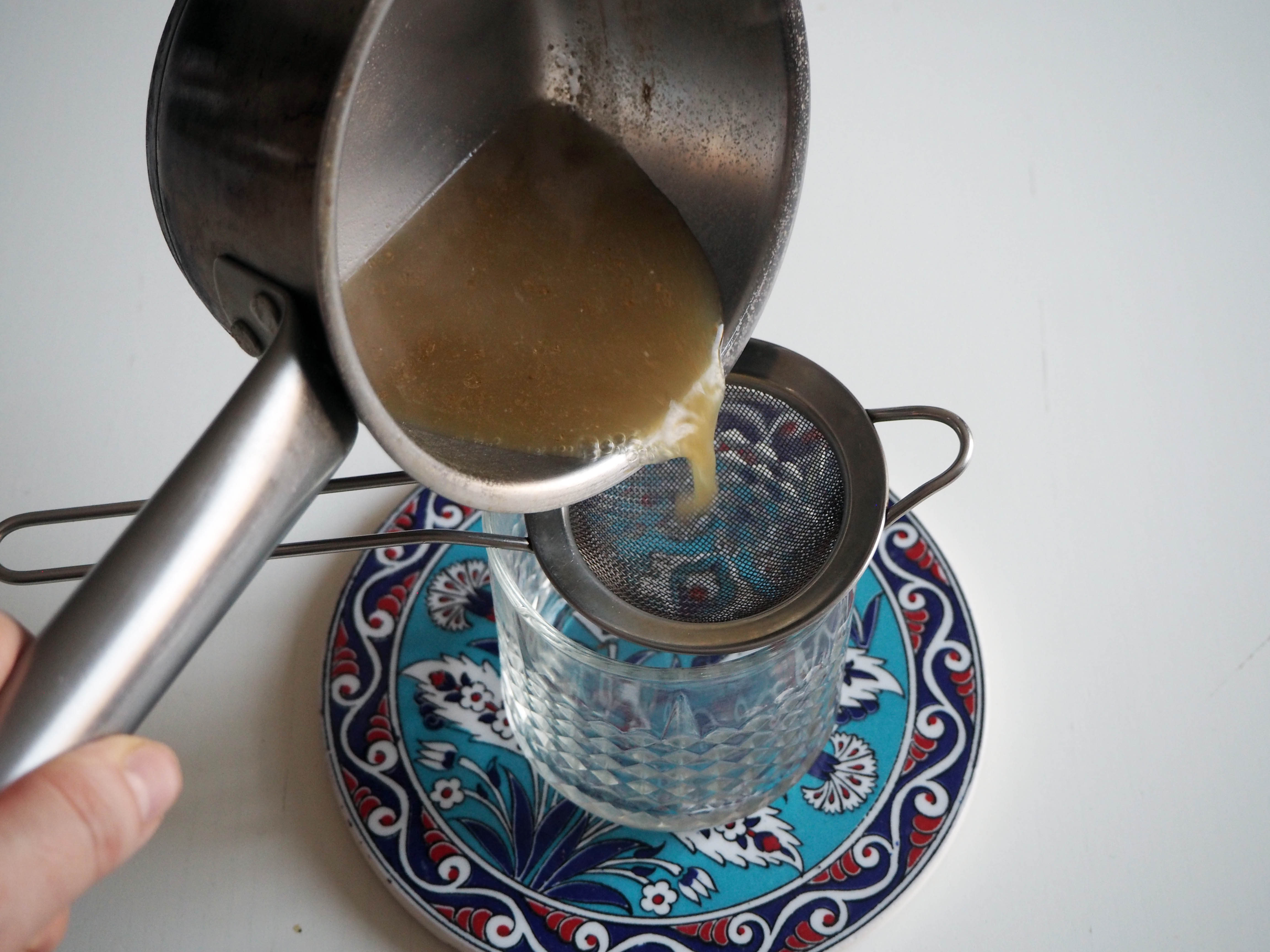 3. Strain the water with aniseed and discard the ground aniseed left on the strainer. Let the water cool down for about 10 minutes.