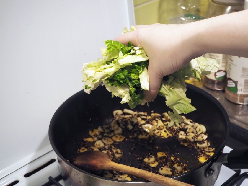 I also cooked the cabbage more than the original recipe. The original recipe only cooks the cabbage a little, making it more of a salad. I wanted to make it more like a well-cooked dish. The result was amazing, and I honestly didn’t blow much!