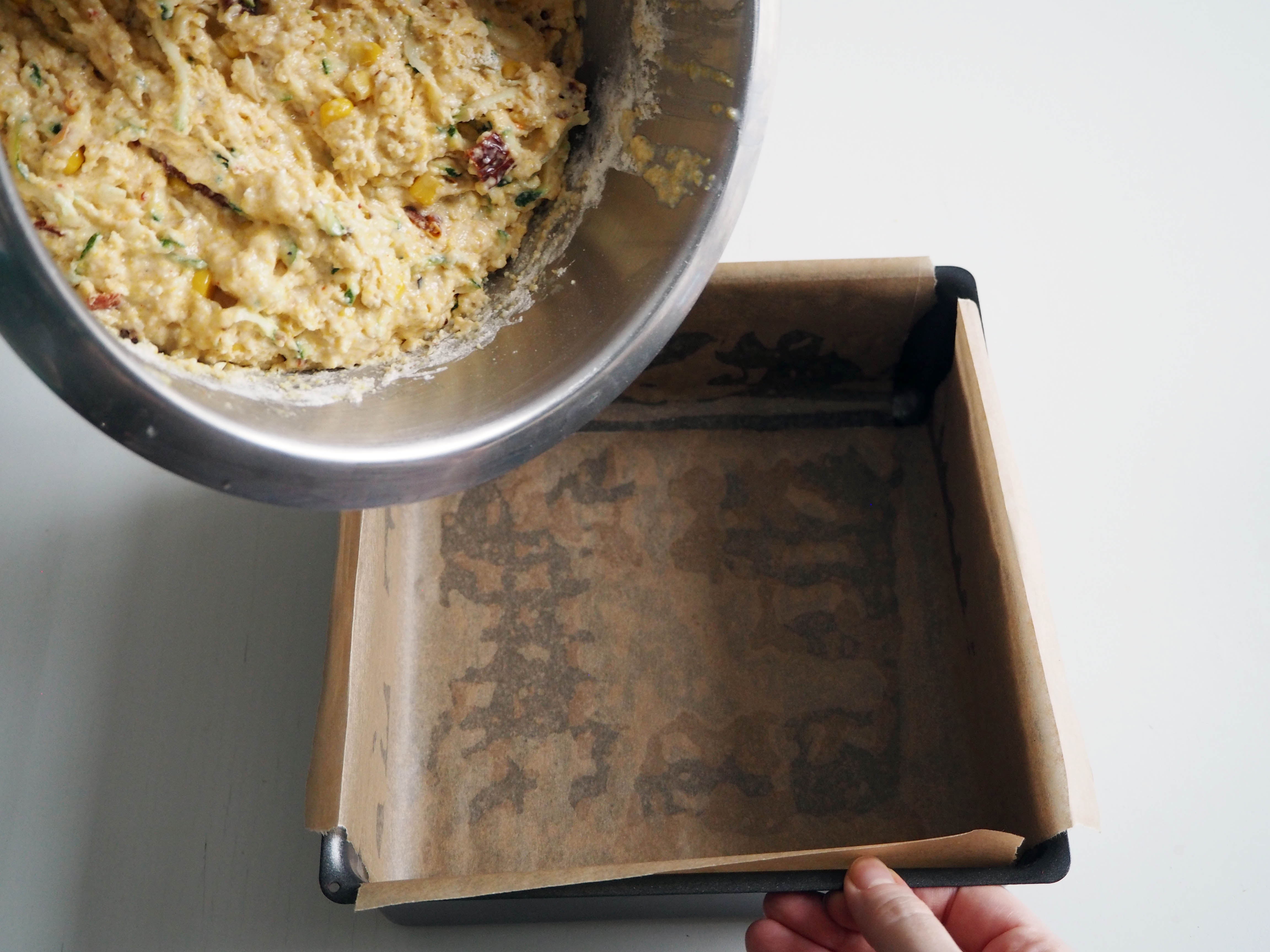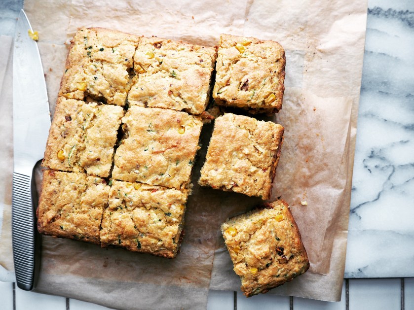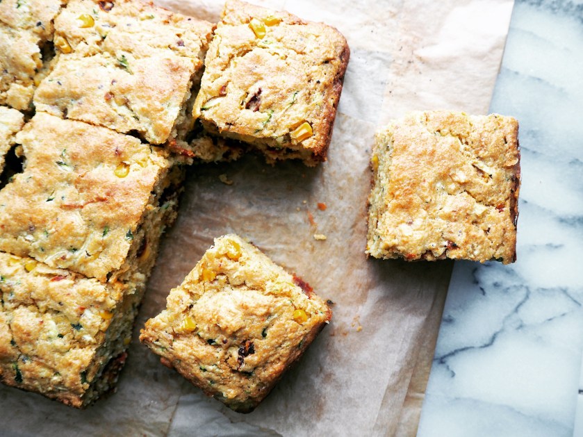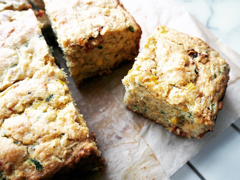 I love corn bread. I think one of the reasons is that it connects me to my Black Sea roots – we love eating flat corn bread made on pan and on stove, together with fried or poached European anchovy. It is a very delicious type of corn bread indeed. This one in this recipe is yet another delicious corn bread, and this time we have a lot more ingredients in it than just corn flour.