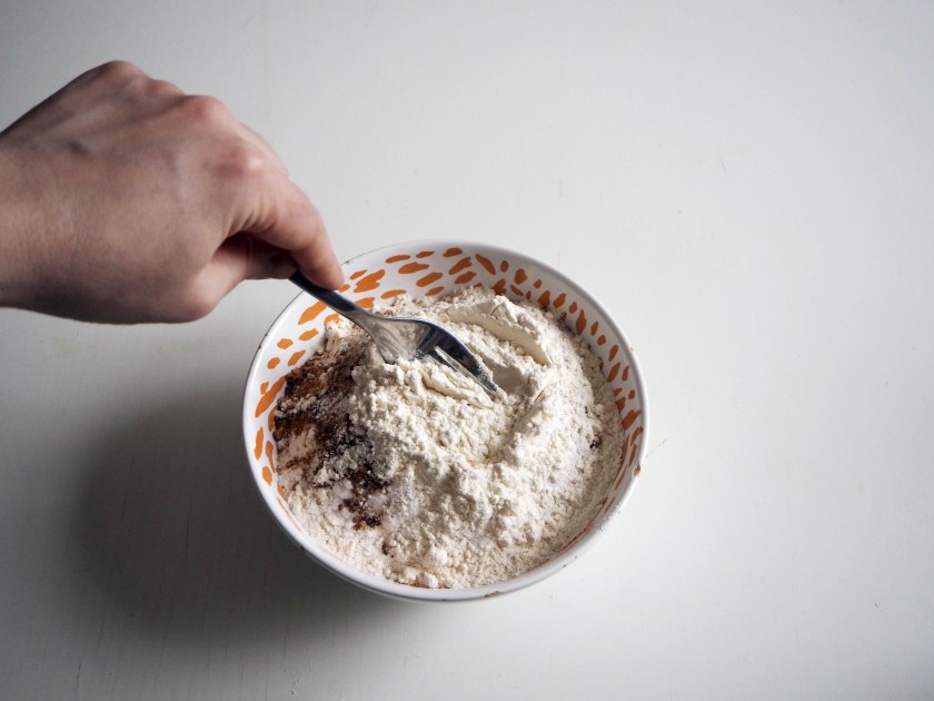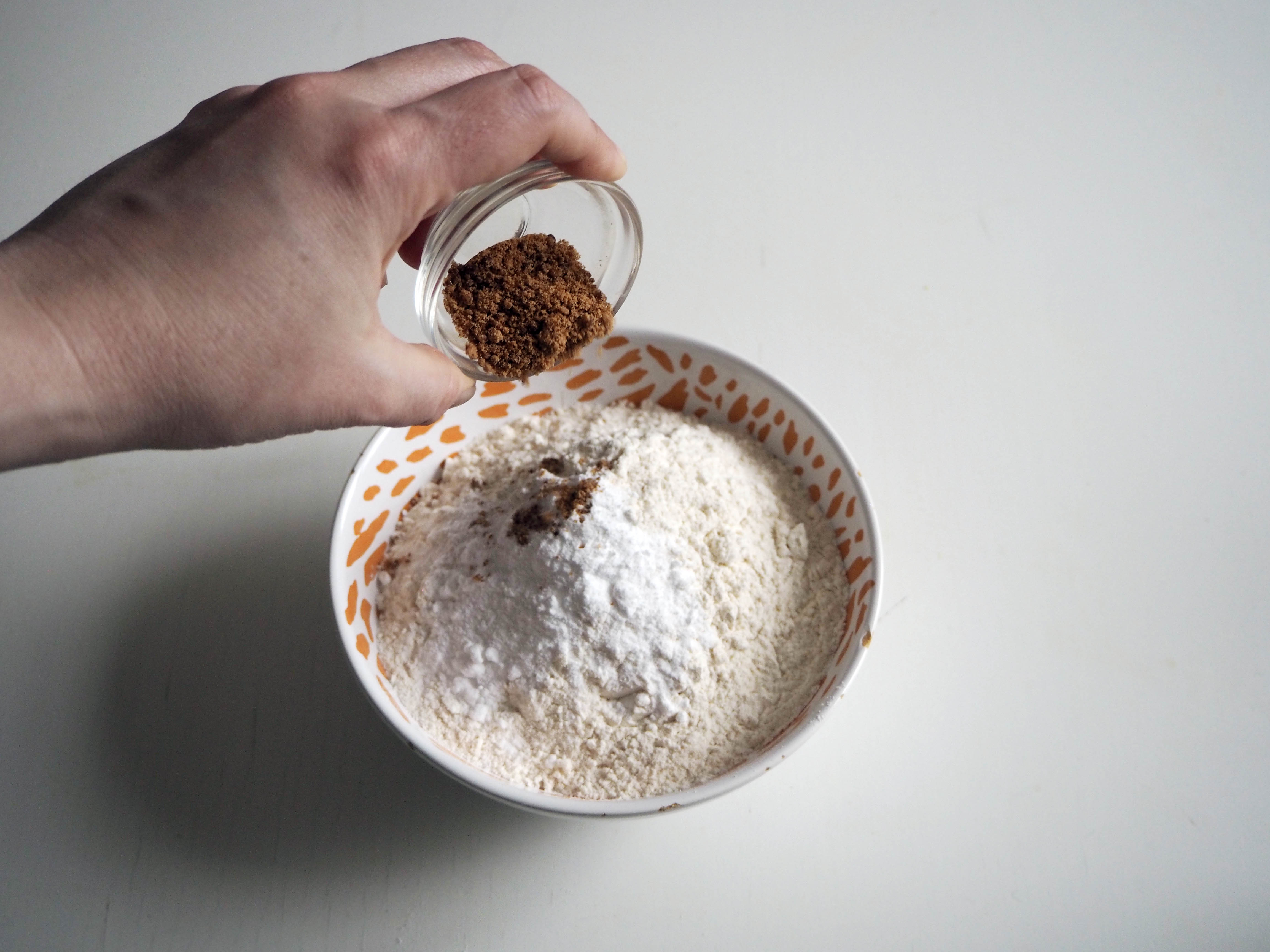3. Mix flour, salt, baking soda, baking powder and brown sugar in a bowl. Put aside.