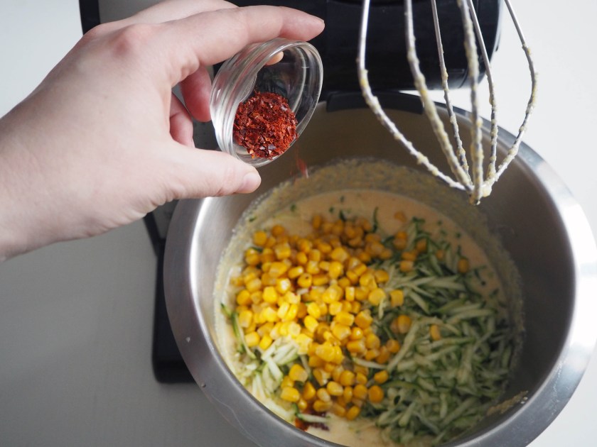 For salty cakes or bread recipes, zucchini is a very nice ingredient to play with. I already have two salty cake and pie recipes with zucchini here and here. Zucchini adds a nice texture, moisture and a bit of colour.