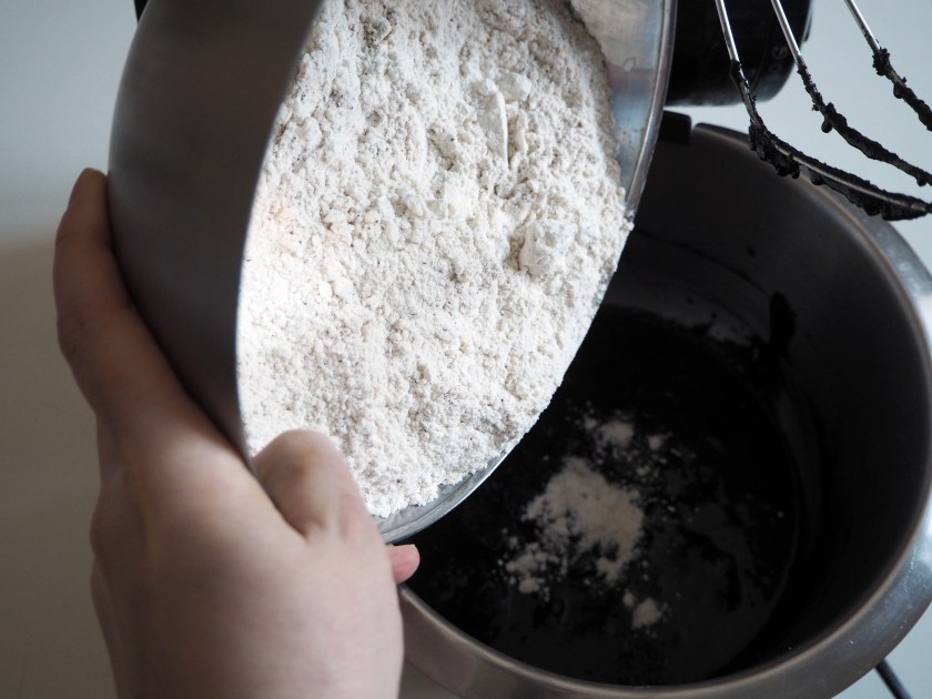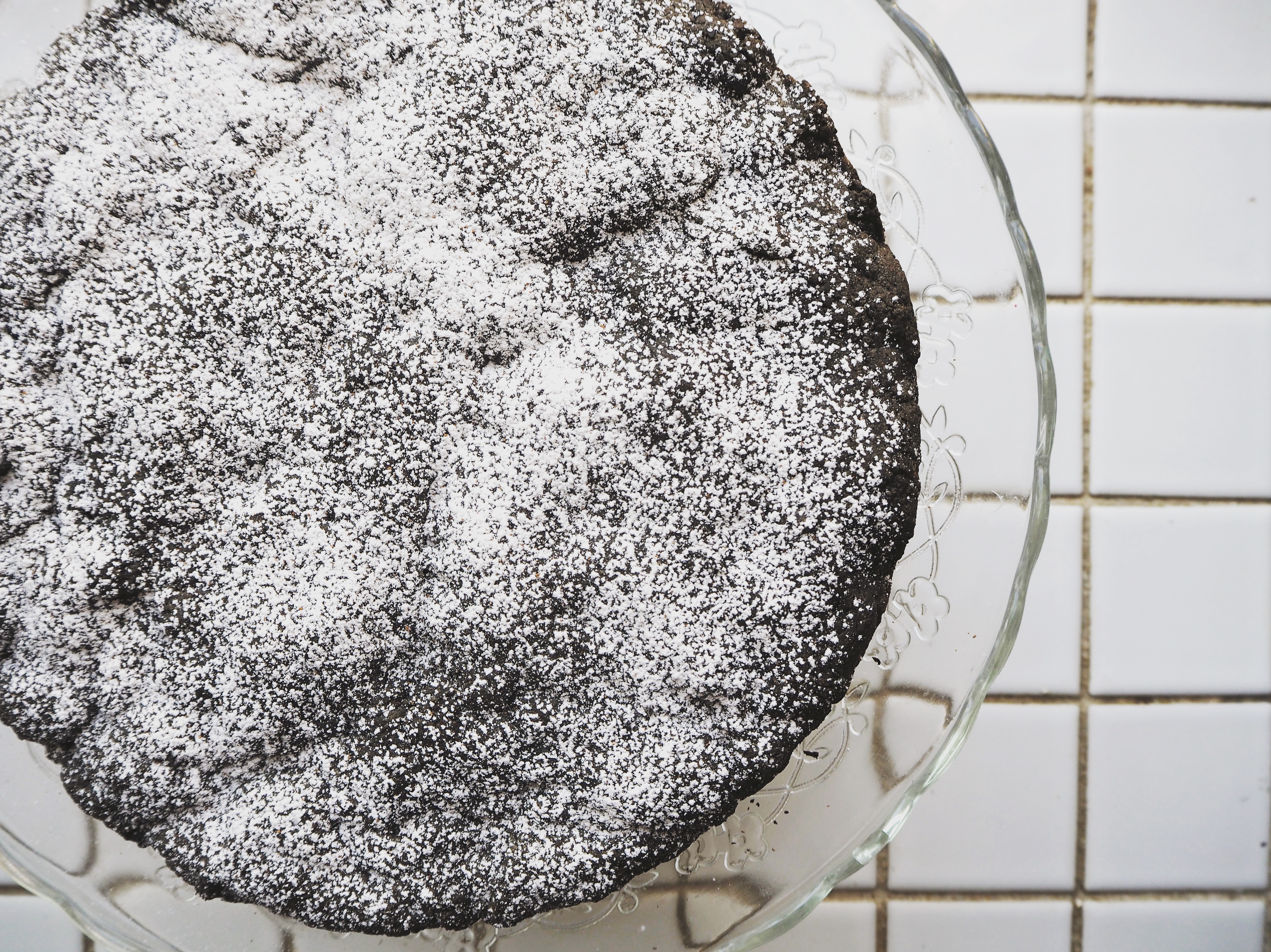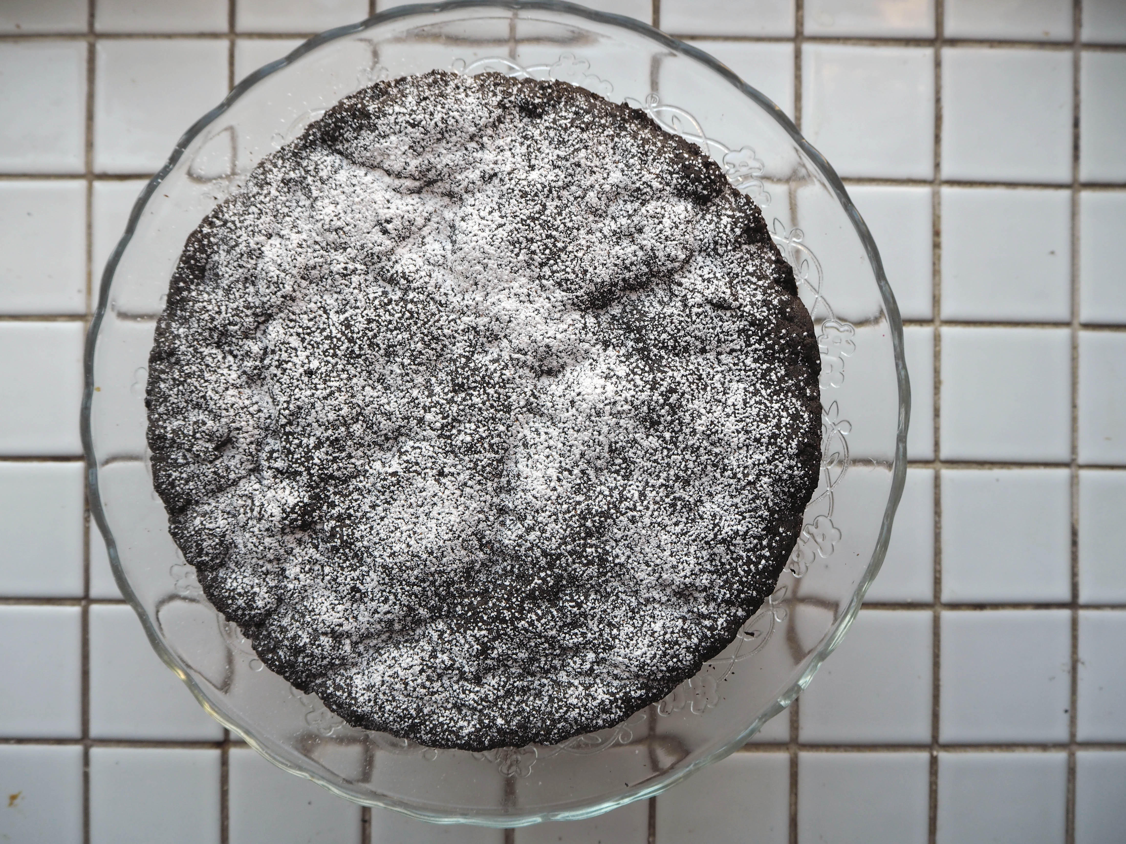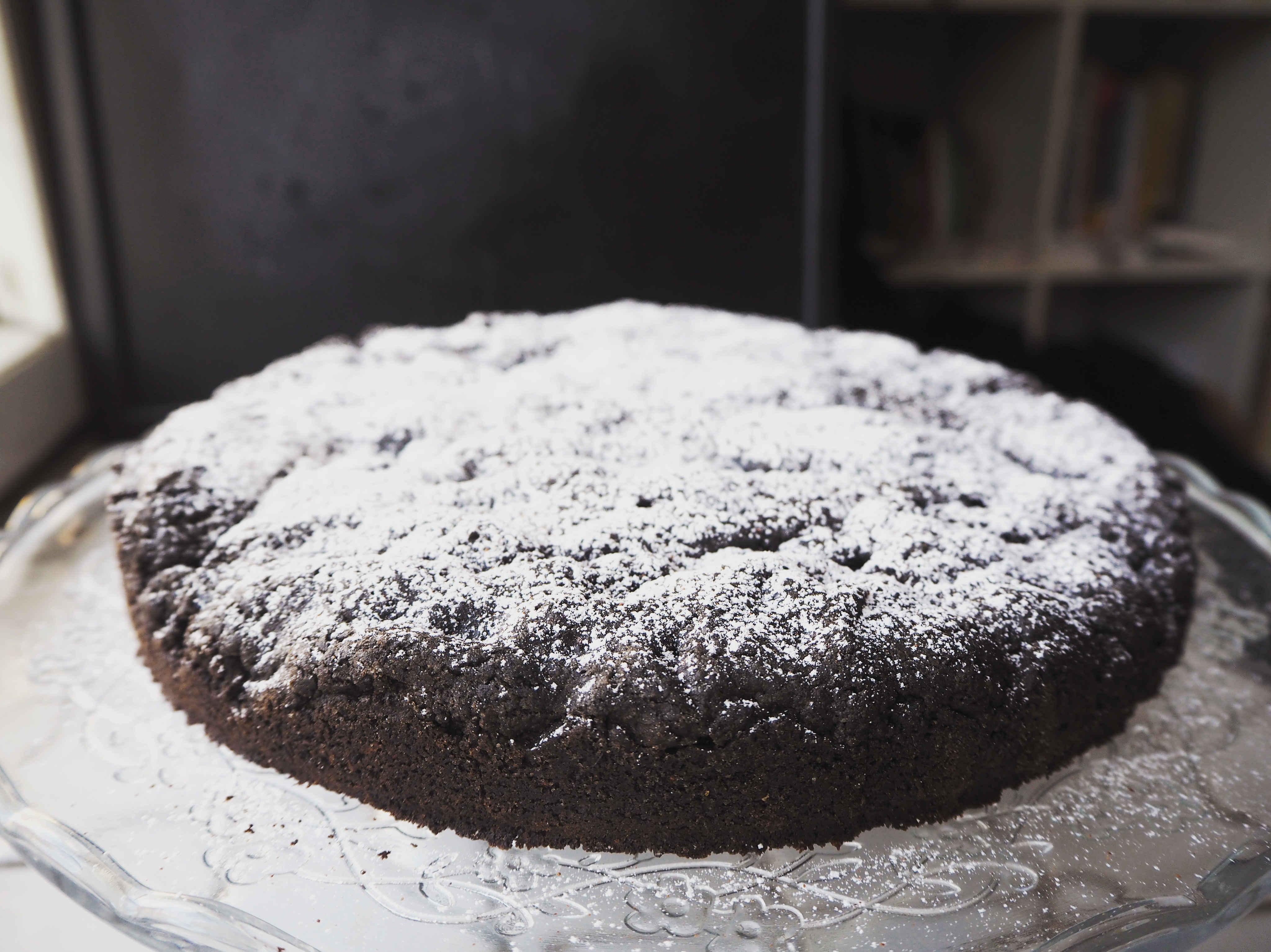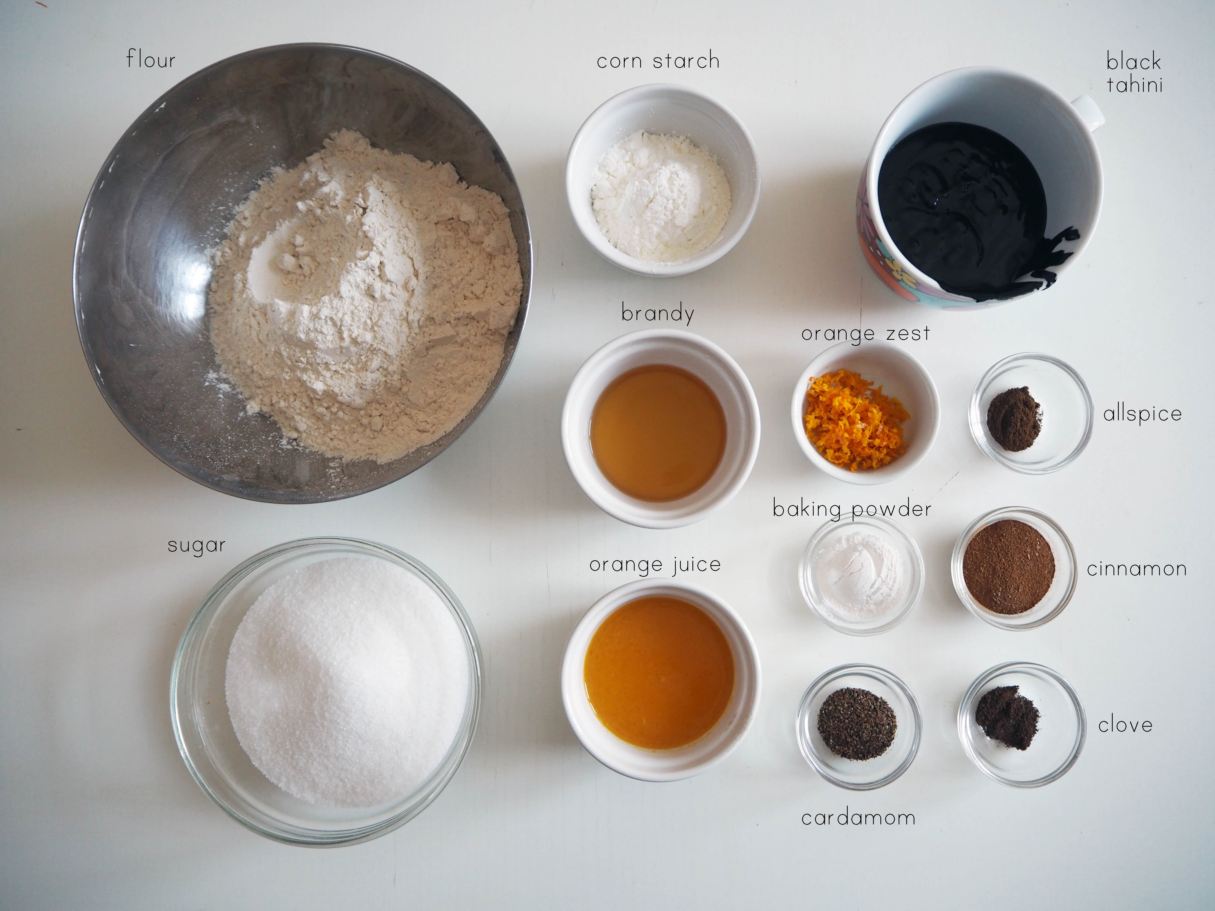So.. my experiments with black tahini continues! And today I have a black cake recipe for you made this slightly bitter tahini type. This cake is very chewy in the middle and quite crusty on the outside. And to “spice” things up, there is also some brandy in it.