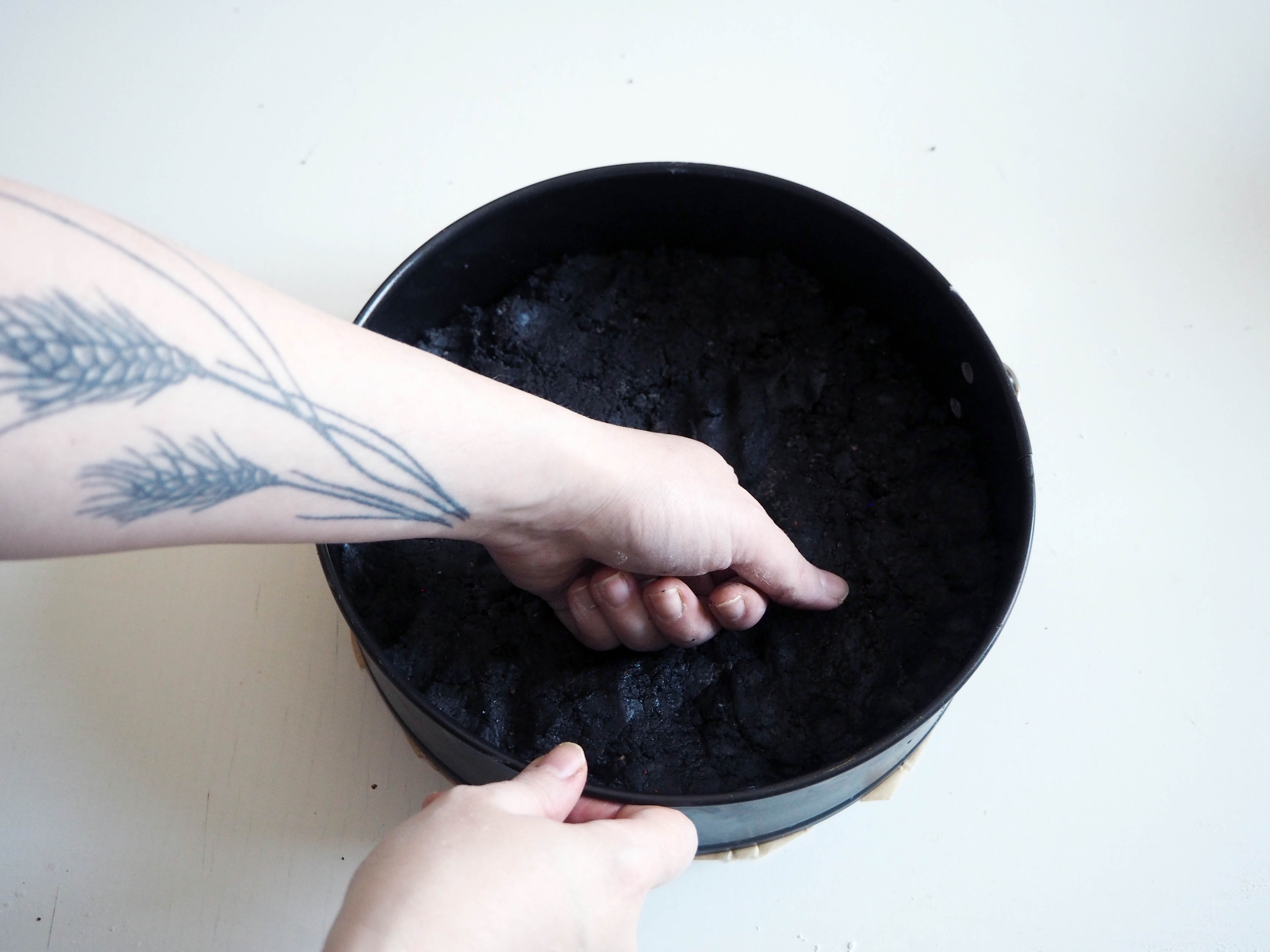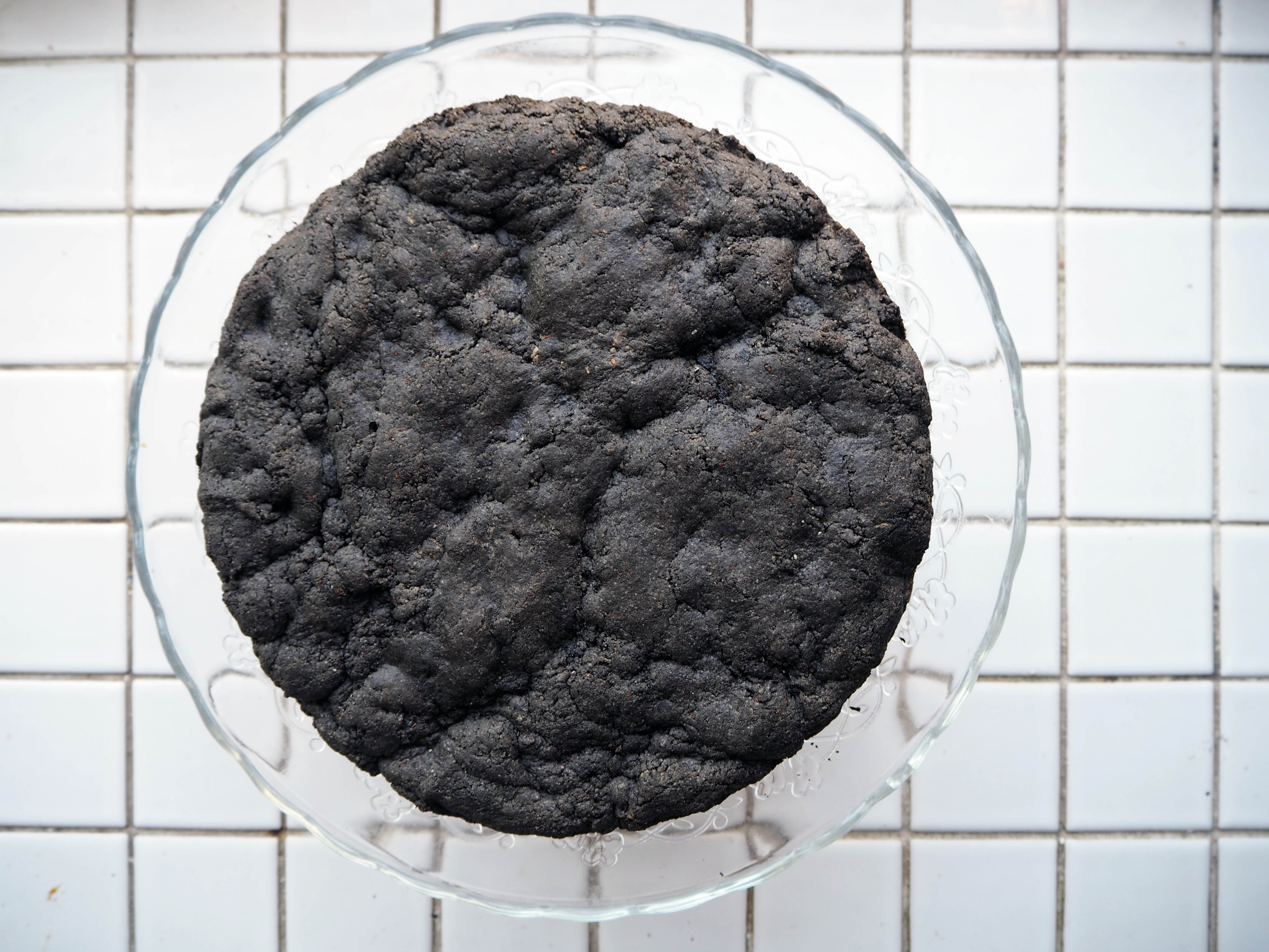 This beautiful pitch-black cake is a version of tahinopita, Greek tahini cake. I added my own twist to the traditional recipe by changing the regular tahini to black tahini and adjusting the spices a bit. (And yes, I listened to Back to Black by Amy Winehouse a lot while making this cake!)