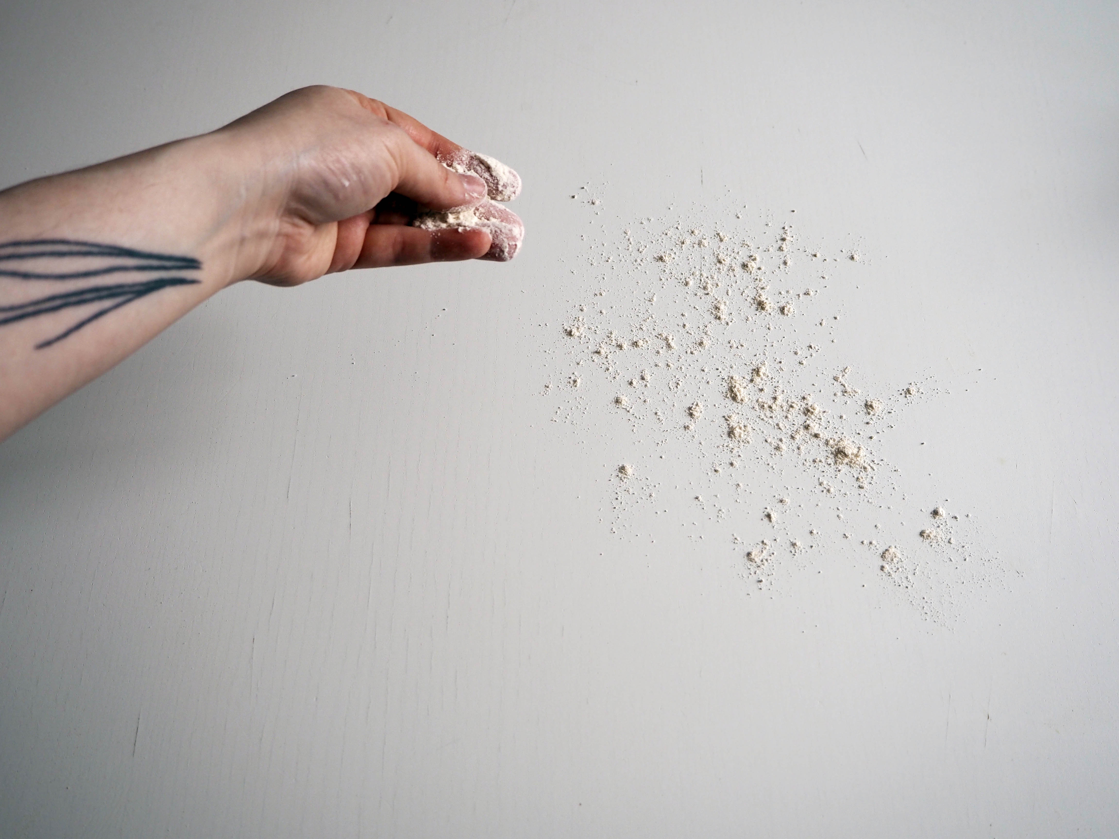 10. Without beating the air in the dough out, fold the dough 4 times.