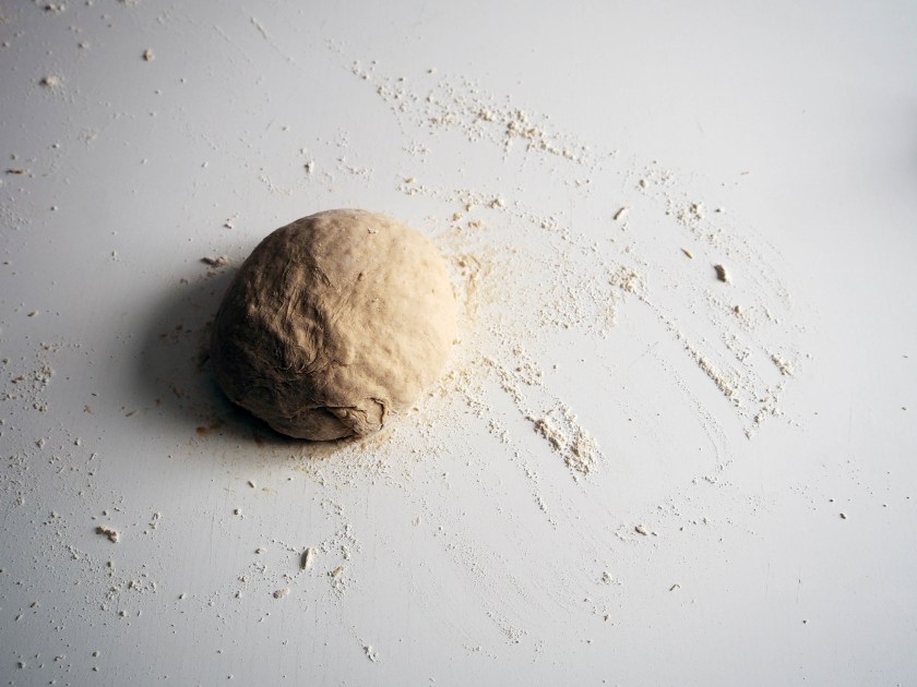 9. Dust your working surface lightly with flour. Put the dough on the counter and very lightly dust its top with flour.