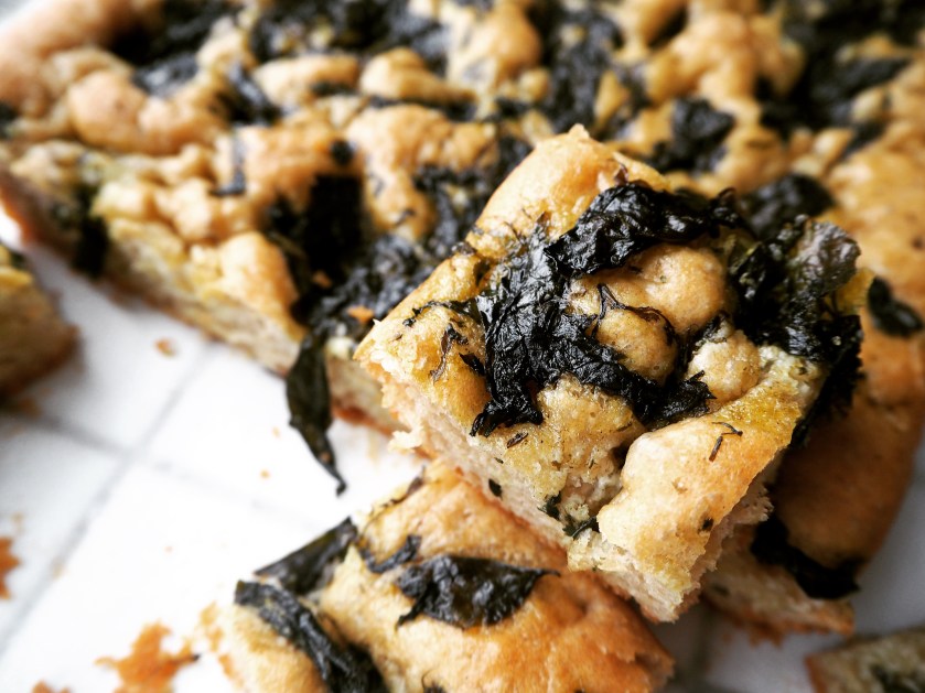 I made this focaccia first time last week for my Monday lunch catering at Hellon. I’ve done other kinds of focaccia before for them, like olives and tomato focaccia. I believe this one has been the freshest of all. I made it again the next day for a my friend Jemima who came for dinner and she loved it as well.
