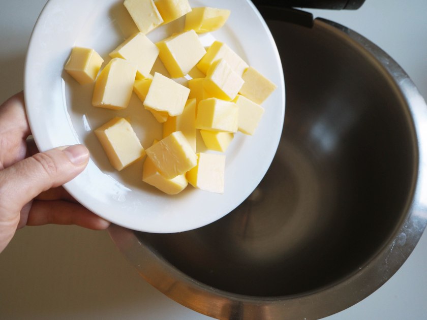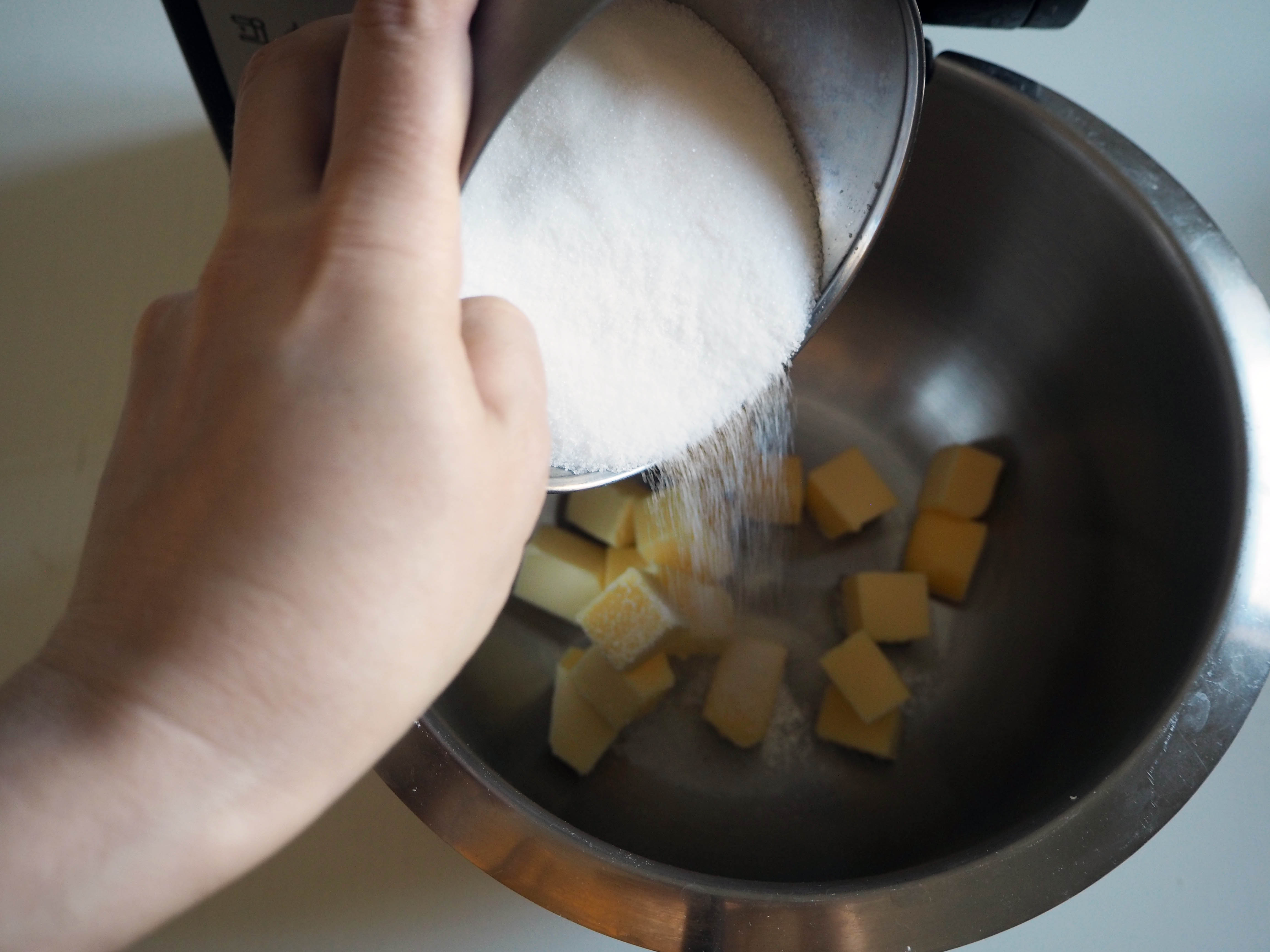 2. Put butter and sugar in a mixing bowl and beat until creamy.