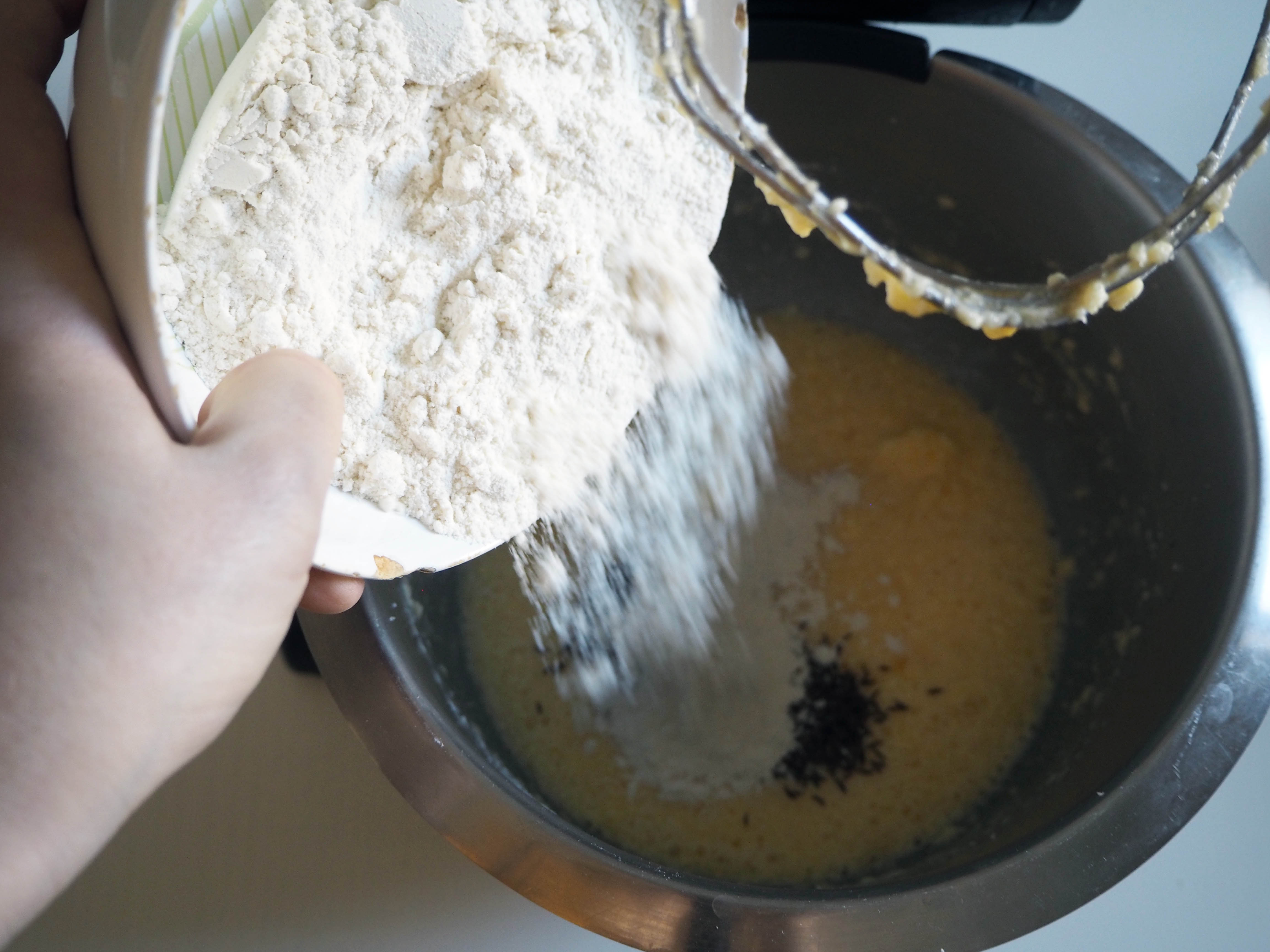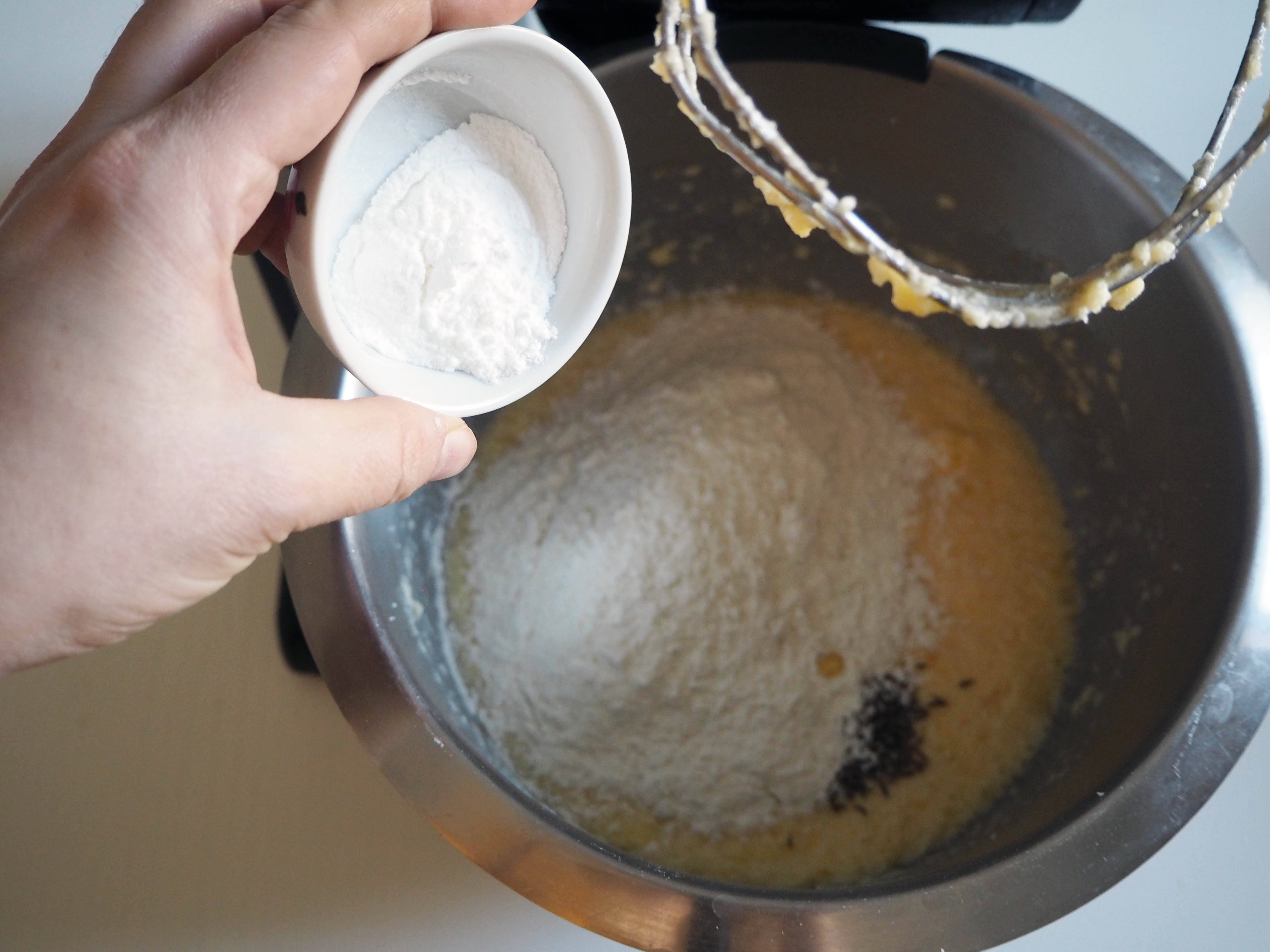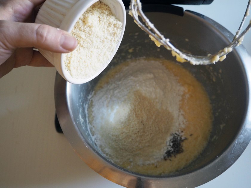 4. Add caraway seeds, flour, baking powder and almond flour and beat just until they are incorporated.