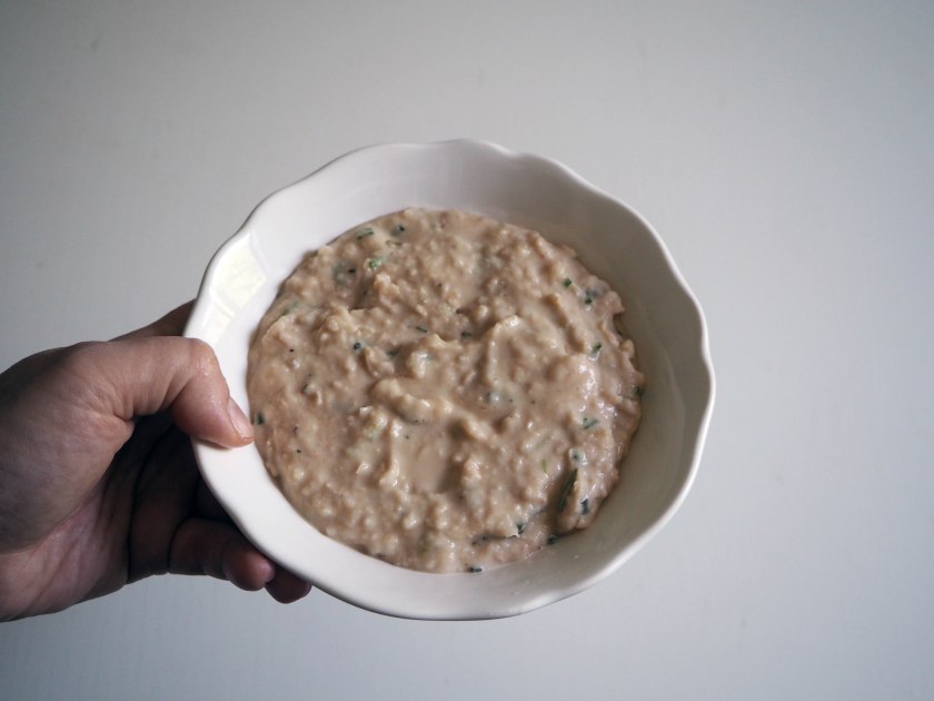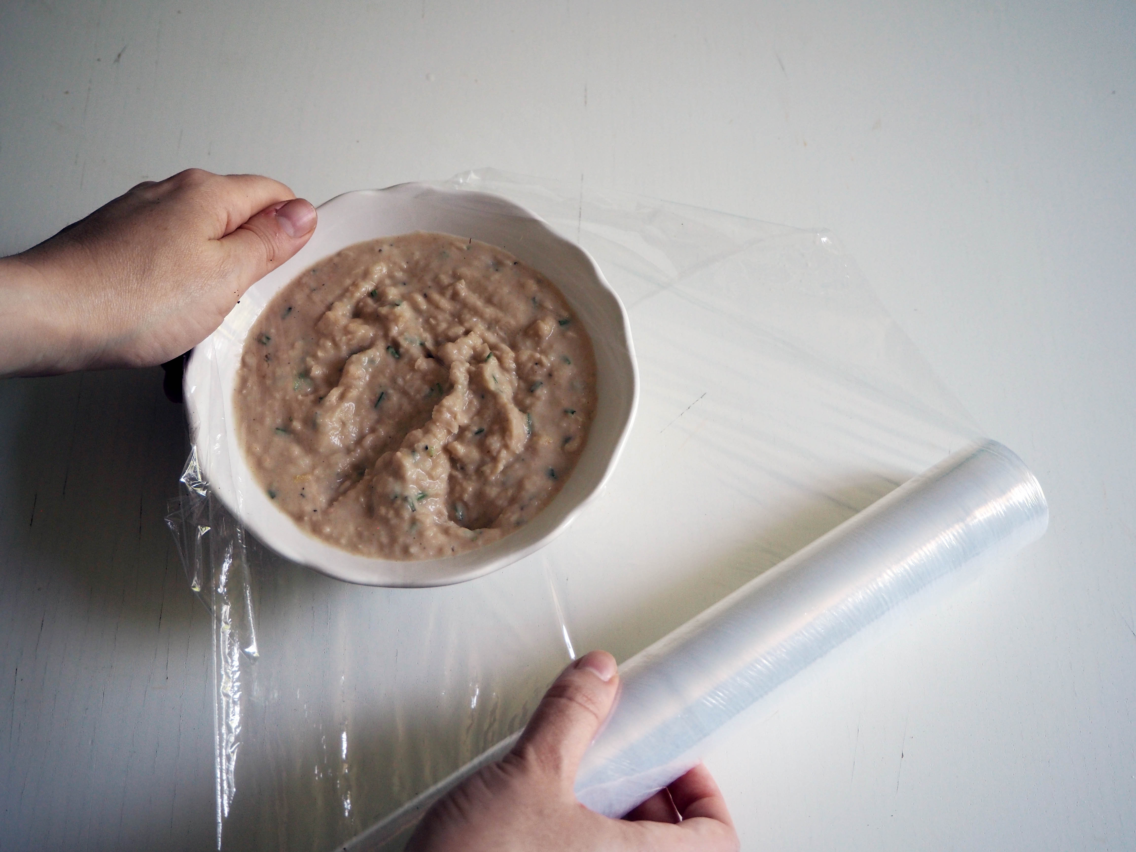 3. Cover the bowl with stretch film and put it in the fridge for 30 minutes up to 24 hours for the tastes to develop. Serve with fresh bread (I tasted with garlic bread, it was divine…). Enjoy!