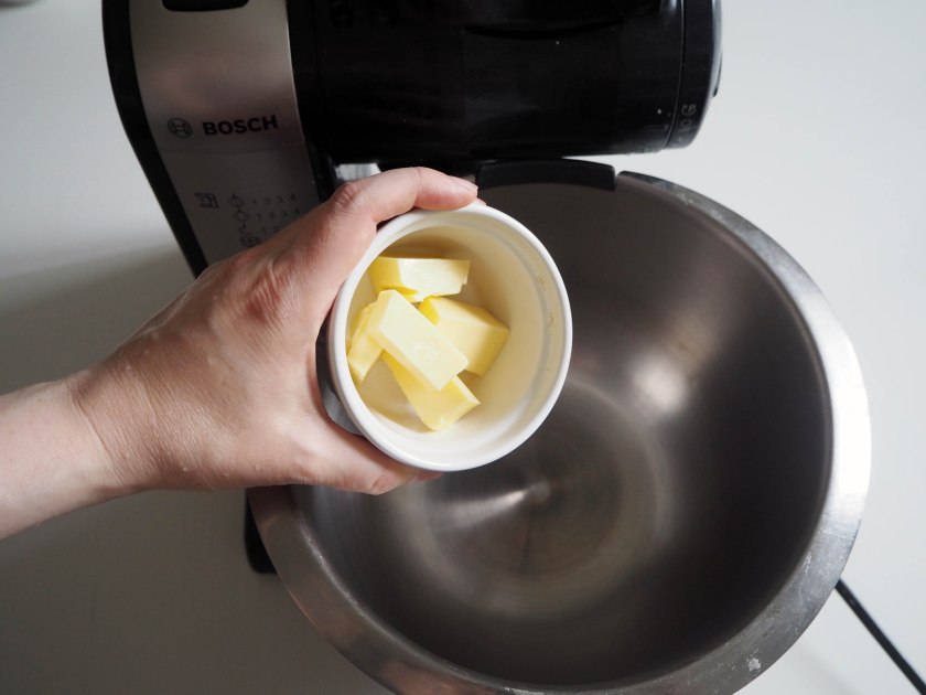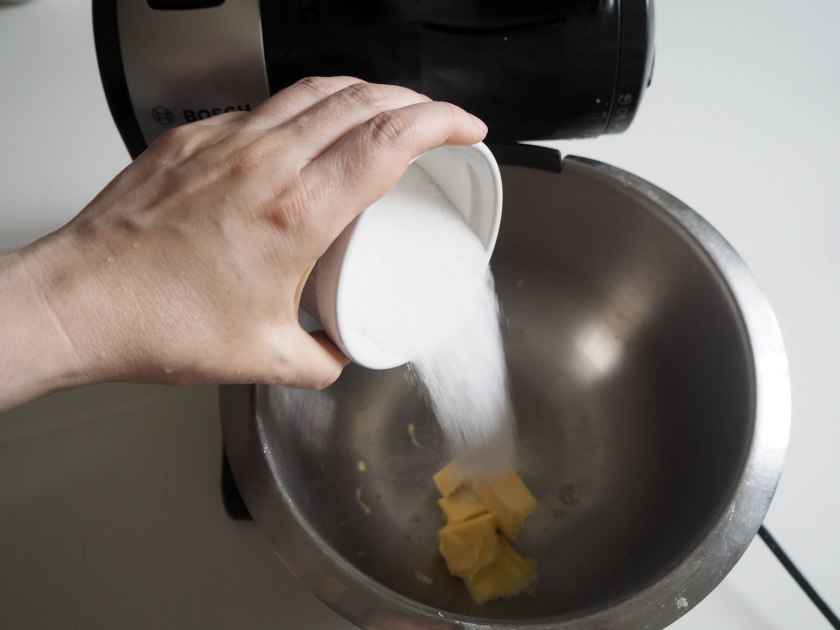 2. In this version, I used electric mixer, however it is very easy to just whisk everything by hand as long as the butter is soft enough. In a mixing bowl, put butter, sugar and honey and beat until it is smooth on medium speed.