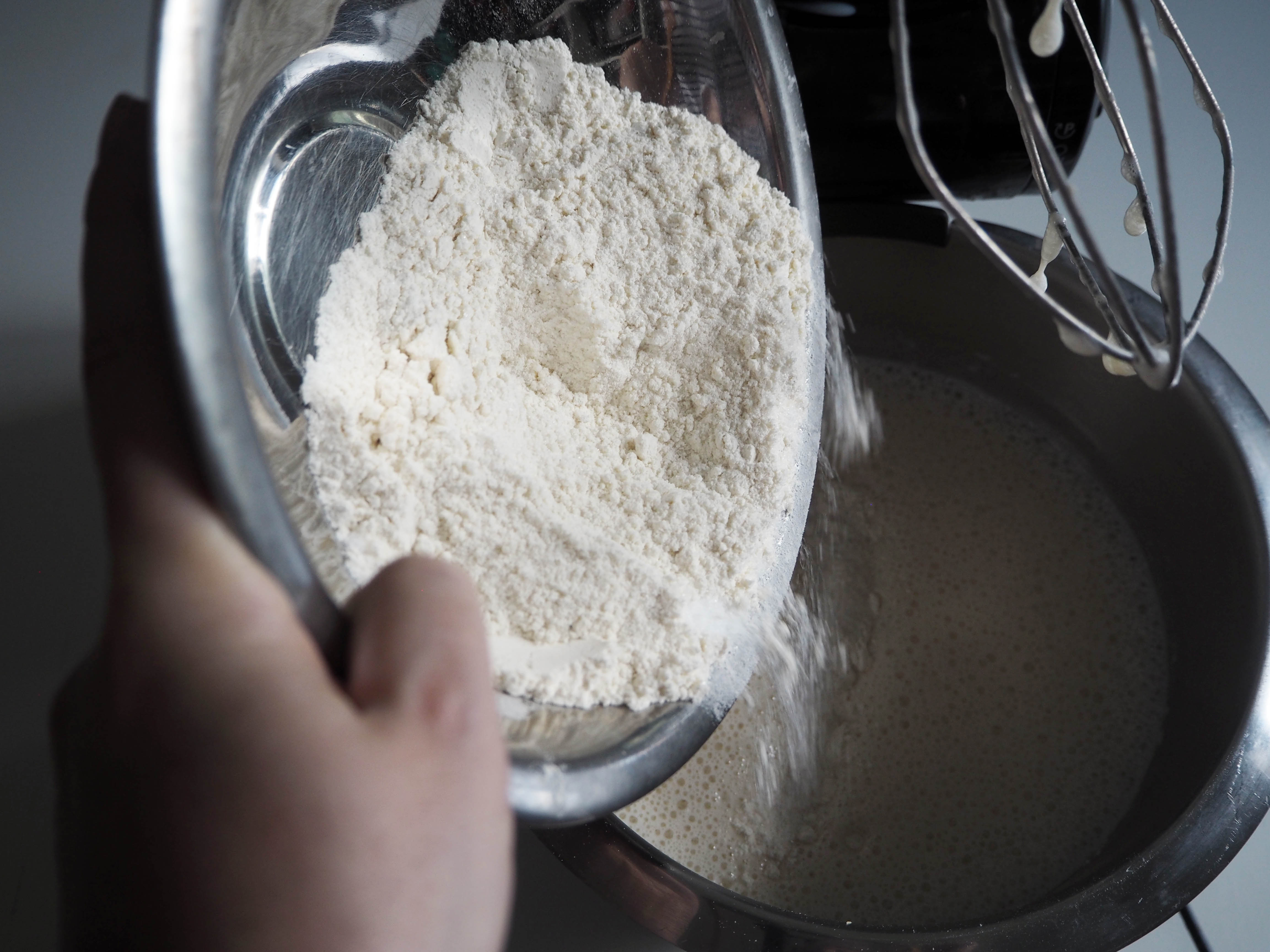 5. Add flour in small batches and beat just until the ingredients are incorporated.
