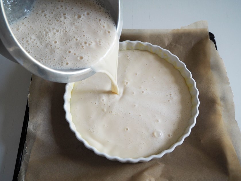 What I loved about this is that the end result is actually something between a flan and a pie. The fact there is no real crust at the base and around makes it lighter. And yet, because there is flour in it, a light, slightly crunchy base occurs while baking.